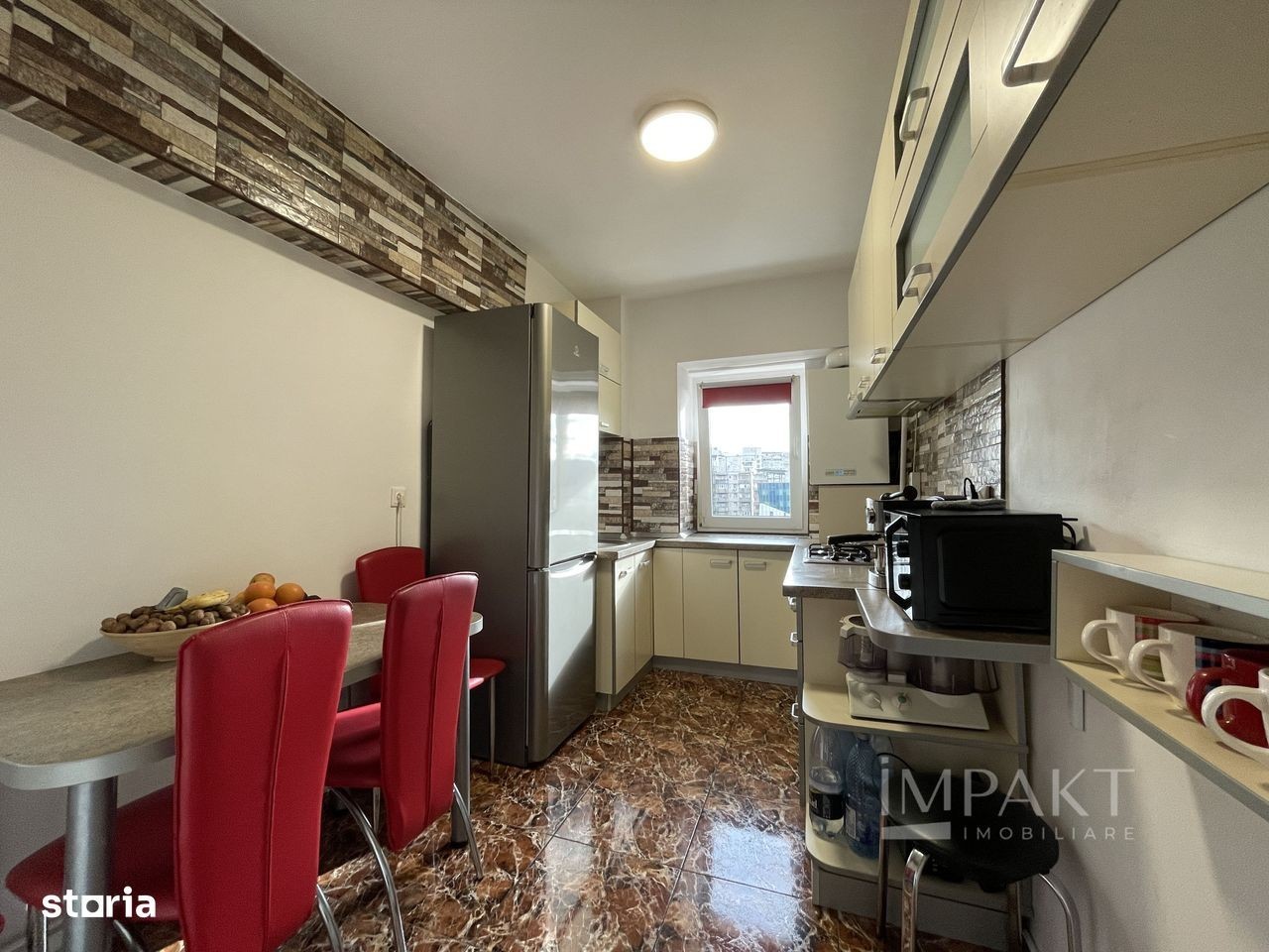 Impakt Imobiliare va propune spre vanzare un apartament cu 3 camere de comandate, in cartierul Marasti, zona Kaufland. Proprietatea are o suprafata de 62 mp utili. Apartamentul este situat la etajul 6 al unui imobil cu regim de înălțime P+7, avand izolatia exterioara de 10 cm. Compartimentarea este urmatoarea: living, bucatarie, doua băi, două dormitoare, două debarale și un balcon. Apartamentul este dotat cu: centrala termica proprie, frigider cu congelator, masina de spalat rufe, plita pe gaz, hota, televizor, etc. Proprietatea se vinde mobilata si utilata conform fotografiilor de prezentare. Apartamentul se afla intr-o zona foarte usor accesibila si are in apropiere supermarketuri, farmacii, restaurante, statie de autobuz si alte puncte de mare interes. Proprietatea este ideala pentru locuit sau investitie. Pentru mai multe detalii sau pentru a programa o vizionare va asteptam la sediul nostru de pe str. Ciprian Porumbescu nr.36