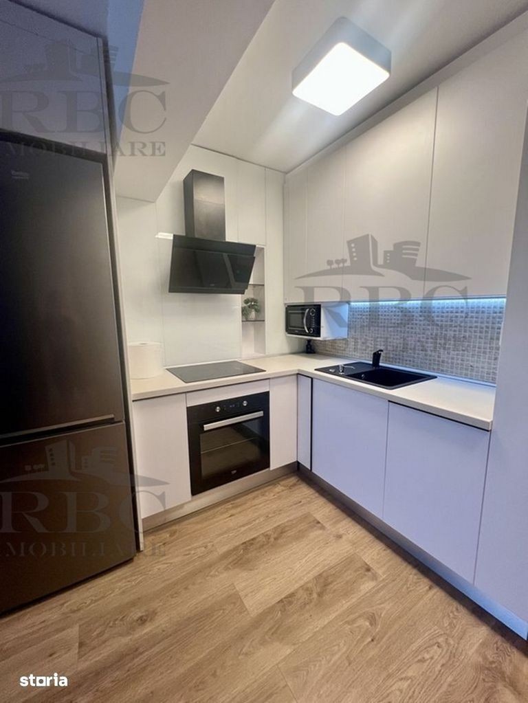 RBC Imobiliare va ofera spre inchiriere un apartament cu 2 camere, cu finisaje moderne, situat in cartierul Gheorgheni, langa Iulius Mall. Apartamentul dispune de 2 camere: dormitor cu dressing cu multe spatii de depozitare, camera de zi cu mobilier personalizat si sofa, bucatarie complet echipata si baie cu cabina de dus. Este utilat cu masina de spalat rufe, masina de spalat vase, cuptor electric, hota, plita electrica, cuptor cu microunde si 2 televizoare. Terasa, care constituie locul ideal pentru petrecerea timpului liber si pentru relaxare, este amenajata cu deck, dispune de un gratar alimentat cu gaz, masa si mobilier pentru terasa. Pentru confortul viitorului chirias, apartamentul detine unitate de aer conditionat. Daca se doreste loc de parcare in subteran, acesta se poate inchiria separat. Pentru detalii in plus, va rog sa ma contactati.