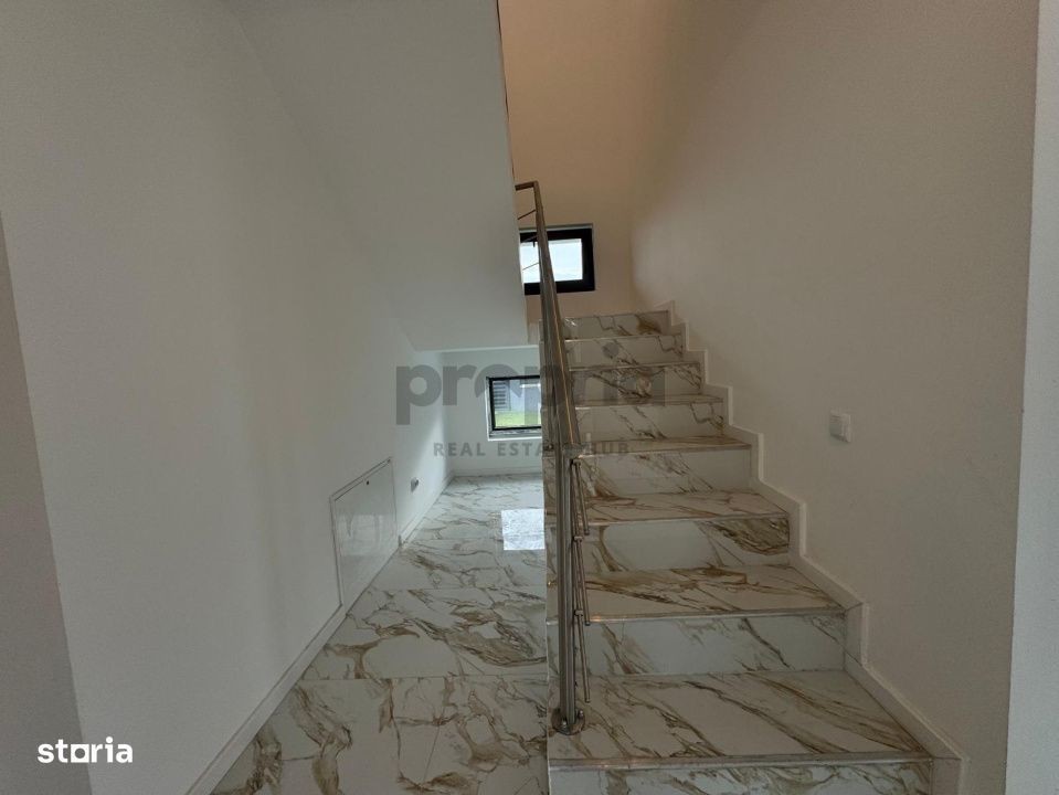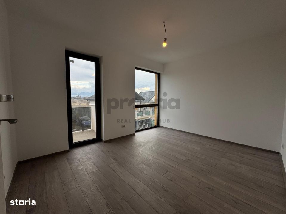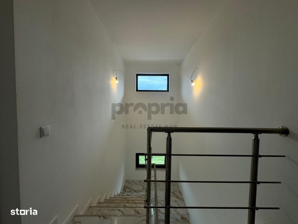 Descriere: De vânzare casă modernă, stil hi-tech/mediteranean fără acoperiș, situată în Hărman, lângă Kastel Transilvania. Teren 415 mp, proprietate îngrădită, toate utilitățile racordate, strada în curs de asfaltare. Construită în 2025, intabulată, disponibilă imediat. Parter (80 mp): hol, dressing, baie, birou, living open-space cu bucătărie (închidere opțională), ieșire pe terasă cu vedere spre Tâmpa. Etaj: master cu baie, dressing și balcon + 2 dormitoare de copii + baie. Se vinde exact ca în poze. Ideală pentru familie. Comision 2%. Contact: Georgiana Samoilă - PROPRIA | Real Estate Hub.