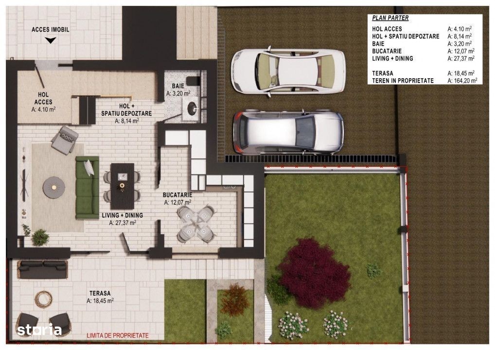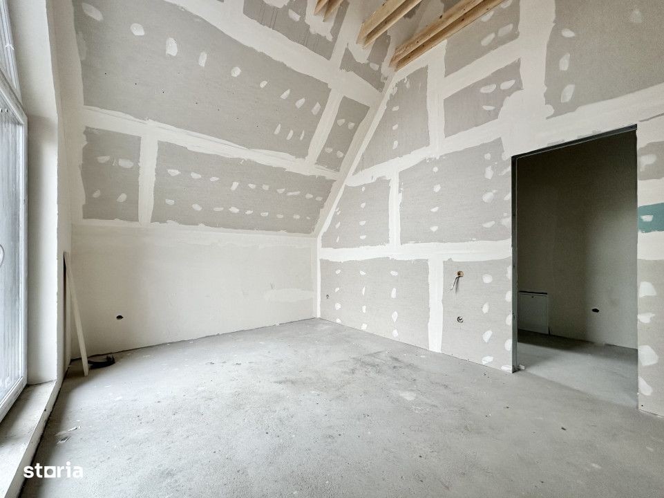 Group Axia ofera spre vanzare duplex in stadiul semifinisat, zona strazii Partizanilor, cartier Dambul Rotund. Unitatea locativa detine teren in proprietate 164 mp si se desfasoara pe o suprafata utila de 127 mp la care se adauga o terasa la parter de 18 mp si un balcon de 12 mp. Se desfasoara pe 3 niveluri, parterul cuprinde livingul open space cu bucataria si 1 baie, la etaj sunt 2 dormitoare, baie si camera depozitare iar la mansarda un dormitor foarte spatios cu dressing si baie proprie plus accesul la balcon. La executia acestui duplex s-a pus mare accent pe calitate si functionalitate pana la cel mai mic detaliu, astfel mentionam: incalzire in pardoseala Rehau la toate etajele si centrala termica Viessman, usa antiefractie la intrare, tamplarie Salamander BlueEvolution 7 camere Streamline Plus, zidarie din caramida Porotherm 25 cm, termoizolatie cu polistiren de 15 cm, invelitoare acoperis retro panel Bilka, termoizolatie acoperis Knauf - vata minerala 30 cm, raport de performanta NZEB - performanta energetica A. In pretul de vanzare este inclus si un loc de parcare in curtea imobilului, acces securizat cu poarta electrica.