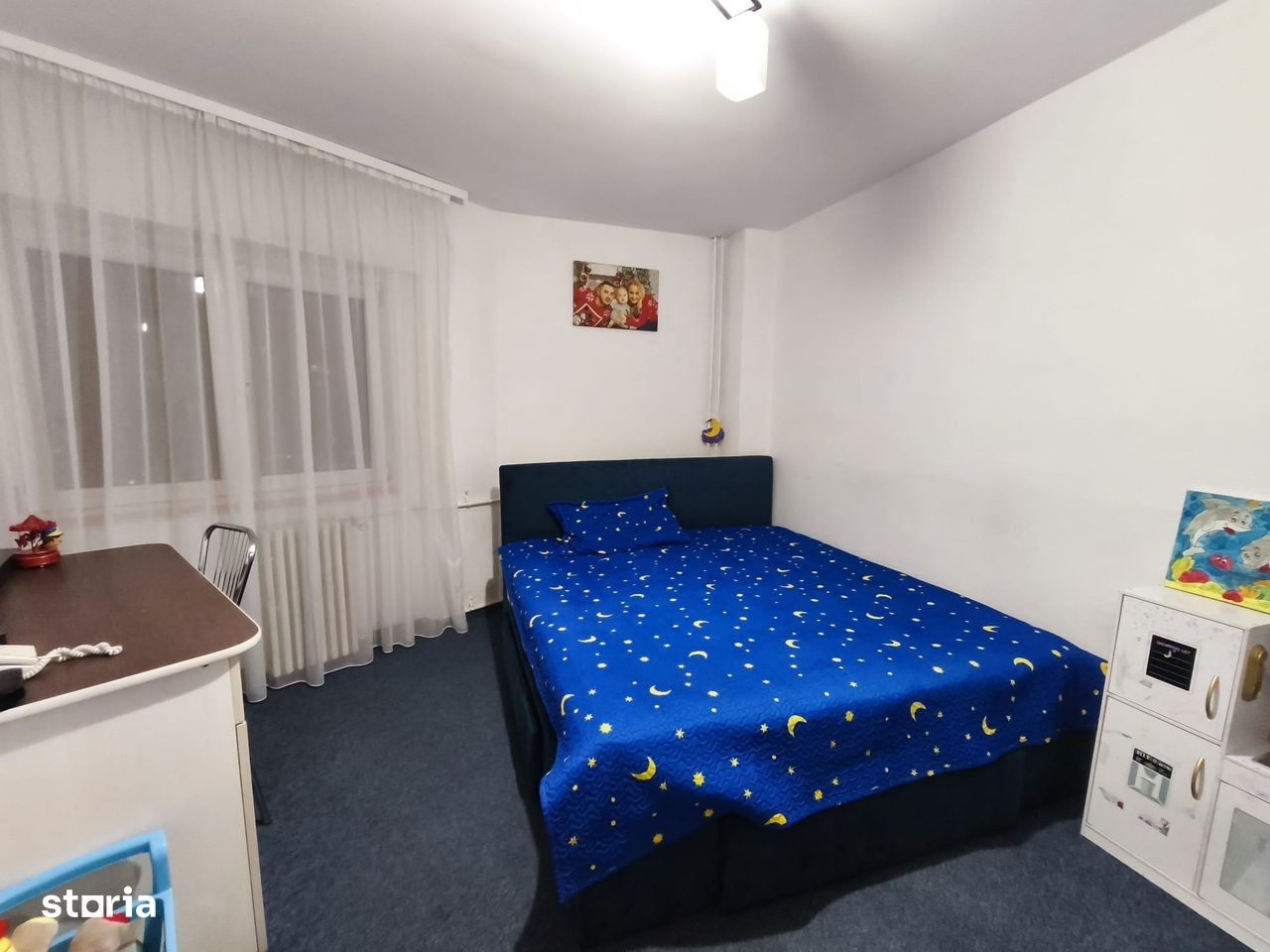 Apartament spatios,bine compartimentat. Curat,locuibil,fara imbunatatiri recente,necesita renovare. Coeficient termic ridicat. Boxa proprie in suprafata de 4 mp. Bloc solid,din beton,finalizat in anul 1984. Scara civilizata,renovata, zona foarte linistita.