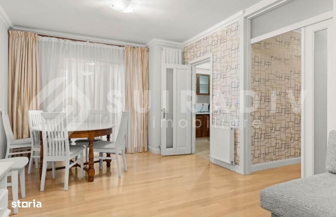 Suiradiv Imobiliare vă propune spre închiriere un apartament modern, situat în ansamblul Platinia, pe Calea Dorobanților. Locuința este formată din hol de acces, un living luminos cu zonă de dining, bucătărie dotată complet, un dormitor prevăzut cu dressing încorporat și acces direct la terasă, precum și o baie dotată cu cadă cu hidromasaj. Apartamentul dispune și de o terasă generoasă, ideală pentru momentele de relaxare.