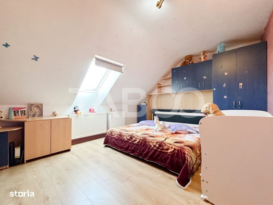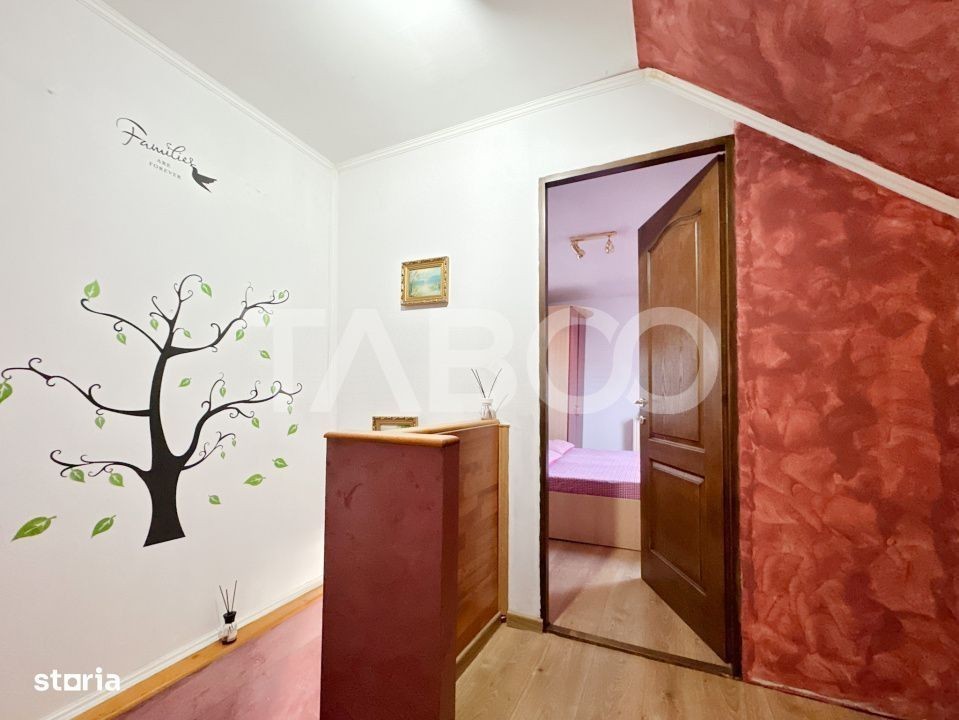 Apartament 3 camere de vanzare, decomandat, 85 mp, zona Mihai Viteazul, Sibiu. TABOO Imobiliare propune un apartament de vanzare cu 3 camere, decomandat, situat in localitatea Sibiu, zona Mihai Viteazul, aflat la Mansarda intr-un imobil tip bloc cu regim de inaltime pe Parter + 4 Etaje + Mansarda; anul constructiei 1986, structura caramida. Suprafata utila de 85 mp + balcon de 5 mp. • Hol; • Bucatarie + Living + Balcon; • Baie; • 2 Dormitoare; • Hol intermediar; • Debara; • Usa intrare: metal; • Usi interioare: celulare; • Tamplarie ferestre: pvc, termopan; • Pereti: vopsea lavabila, faianta; • Podele: parchet, gresie. • Bucatarie: mobilata, utilata; • Mobilat: complet; • Utilitati: curent electric, apa, gaz, catv; • Izolatii: exterior, bloc izolat termic; • Contorizare: apometre, contor gaz, contor curent electric; • Caracteristici bloc: interfon, acoperis. Apartamentul se vinde mobilat si utilat cu: plita pe gaz, cuptor, hota, masina de spalat rufe, frigider cu congelator. Incalzirea se realizeaza prin centrala proprie, calorifere. Se accepta ca si modalitate de plata surse proprii sau credit bancar. Pret: 89.900€ Sună-ne acum și află detalii despre această proprietate de vanzare din Sibiu, dar și despre alte proprietăți potrivite pentru tine.