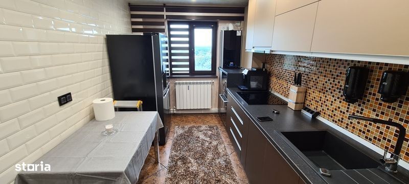 Apartamentul de 3 camere modificat este conf.1 decomandat situat la etajul 9 intr-un imobil cu 10 nivele. In ceea ce priveste compartimentarea, apartamentul detine 65 mp suprafata utila, modificat astfel: un living ce ofera spatiul suficient relaxarii si primirii oaspetilor; un dormitor generos ca si spatiu, calduros si luminos; o camera folosita ca si dressing/ birou; o baie ce va ofera spatiul sufiecient pentru a va face rutina zilnica dotata cu dus, avand faianta de o culoare deschisa pentru a conferi luminozitate si idea de spatiu; baia are geam si este bine aerisita si un balcon situat cu iesire/intrare living. Apartamentul este complet izolat, geamuri termopan triplex si a fost renovat cu materiale de calitate, mobilat si utilat ultra modern avand ca dotari : 3 tv lcd, 2 aere conditionate, masina spalat vase incorporabila, frigider, masina spalat rufe, masa de calcat+fier, cuptor elctric, cuptor microunde, plita vitroceramica pe inductie, hota, aparat cafea cu rasnita incorporata, prajitor paine si alte aparate electrocsanice de bucatarie, centrala termica in condensare, pahare, farfurii, prosoape, lenjerii, perne, pilote, etc. Apartamentul detine si un spatiu de depozitare exterior inchis cu cheie complet utilat cu rafturi. Blocul este dotat cu lift, interfon si sistem de supraveghere video. In conditiile in care liftul scarii este defect se poate folosi oricare dintre lifturile de la celelalte 3 scari, scarile comunica intre ele prin tronsoane de trecere. La semnarea contractului de inchiriere se achita contravaloarea unei luni de chirie in avans + o luna garantie, contactul se inregistreaza la ANAF ! Pretul nu este negociabil, apartamentul nu este destinat persoanelor dubioase sau altor persoane cu intentia activitatilor nelegitime, imi rezerv dreptul de a selecta clientii. Rog seriozitate maxima !