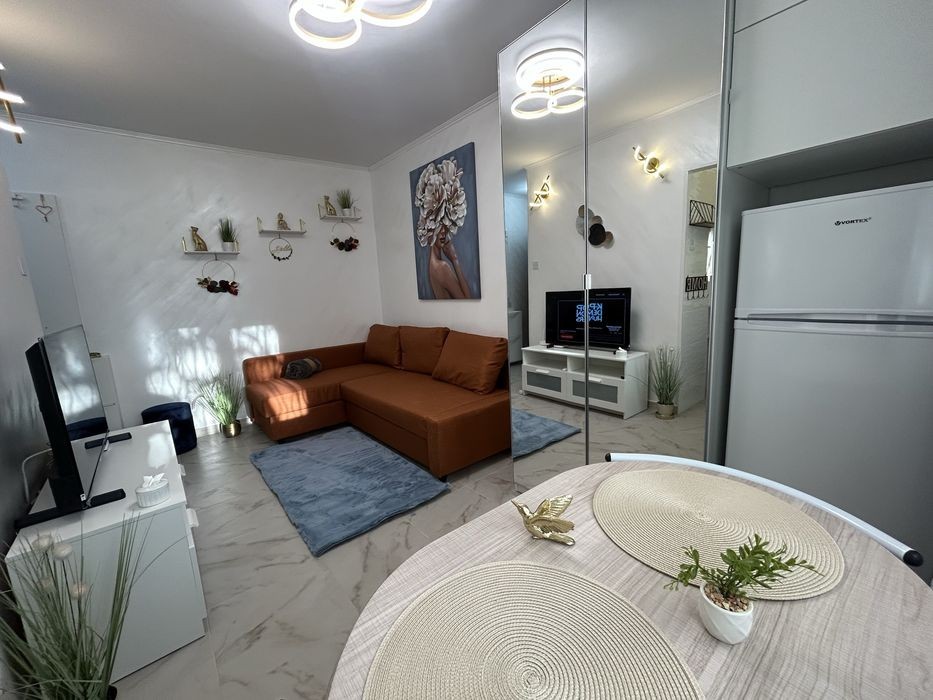 Garsonieră complet renovată, rond Alba Iulia adiacent Bulevardul Unirii,sector 3 București Suntem la câteva minute de stații de autobuz care duc către Unirii - metrou, Piata Muncii -metru sau Vitan Mall București. Garsoniera a fost refăcută de la cărămidă, instalația electrică și sanitară schimbată total. Tot mobilierul și electrocasnicele sunt n NOI cu țiplă pe ele. Nu o fost niciodată locuită sau închiriată. Canapeaua Ikea se deschide și are și ladă de depozitare. Aer condiționat Mașină de spălat cu uscător Cuptor cu microunde Frigider. Blocul este civilizat, garsoniera este la etajul 2 din 10, încălzirea se face la centrală proprie a blocului nu la Radet. 07******89 Liberă la vizionare și la vânzare