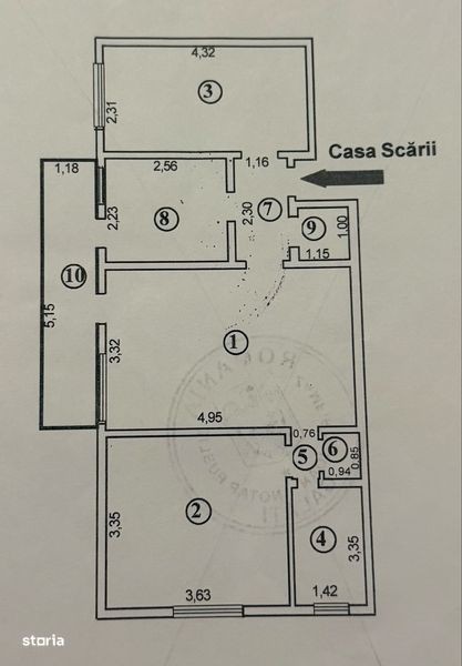 Apartament cu 3 camere de vanzare in Galati, zona ultra-centrala. Suprafata:67 mp din care 6 mp reprezinta balconul.