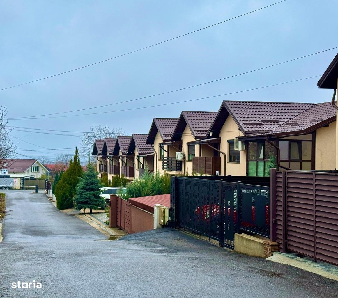 Proprietate in reprezentare exclusiva, clientul nu achita comision catre agentie! Casa de tip insiruit situata intr-un cartier privat din Miroslava, la o distanta de doar 400 metri fata de Family Market, acces in totalitate pe drum asfaltat.