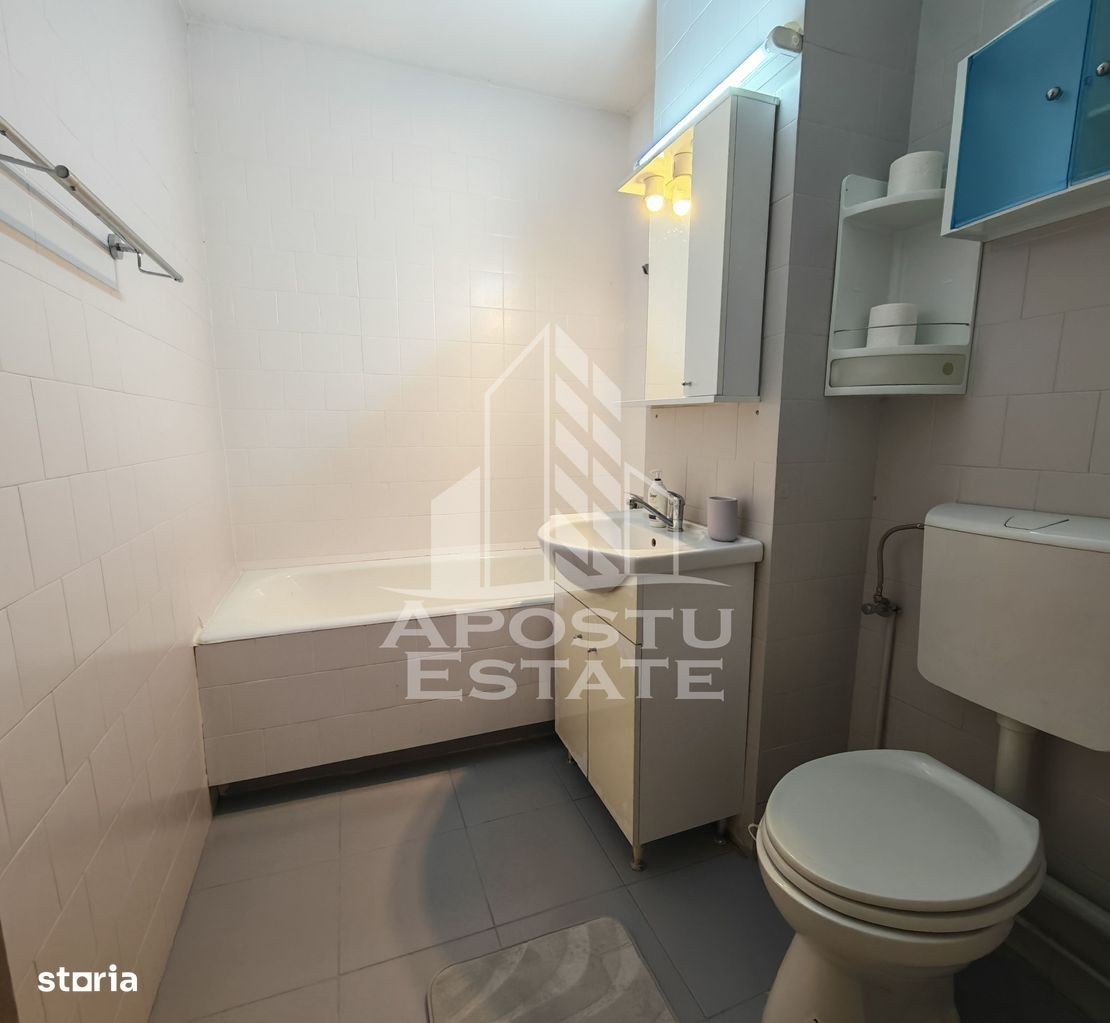 APOSTU ESTATE va ofera spre inchiriere un apartament cu 3 camere si 2 bai, renovat, situat in zona Aradului. Zona este linistita, apartamentul aflandu-se la cateva minute fata de parc, market, statie de autobuz sau fata de scoala. Apartamentul este situat la parterul inalt al unui bloc ce este izolat exterior, are o suprafata utila de 64 mp, este decomandat si compartimentat astfel: - hol de acces - living spatios - bucatarie mobilata si utilata - hol principal cu dressing - baie de serviciu - dormitor mic - baie principala - dormitor matrimonial Confortul termic este realizat prin centrala proprie. Disponibil imediat! Va asteptam cu drag la o vizionare chiar astazi!