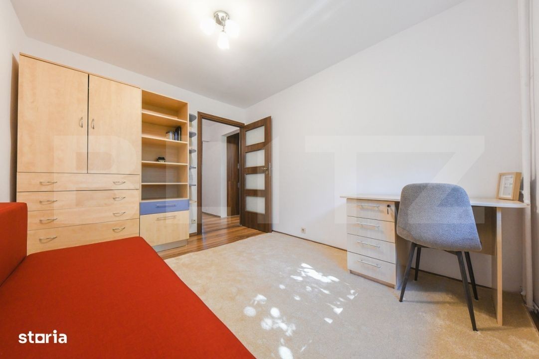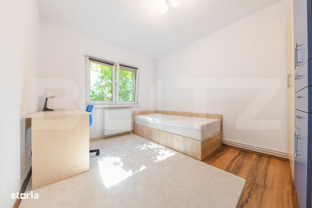 Blitz vă propune spre închiriere un apartament spațios cu 4 camere, perfect pentru familii sau persoane care apreciază confortul și un spațiu generos! Locuință situată într-o zonă liniștită, ideală pentru un stil de viață relaxat, dar bine conectat la facilitățile orașului. Detalii apartament • Suprafață utilă: 90 mp • Compartimentare decomandată, perfect echilibrată: - Living generos cu canapea extensibilă - 3 dormitoare primitoare - Bucătărie separată - 2 Bai - Spații de depozitare bine organizate Dotări și avantaje - Centrala termică nouă, eficientă energetic - Mobilier de calitate superioară - Finisaje atent întreținute, atmosferă caldă și primitoare Disponibil imediat - locul perfect pentru cei care își doresc spațiu, funcționalitate și un cămin unde să se simtă cu adevărat „acasă”. Programează o vizionare și vino să-l descoperi pe viu!