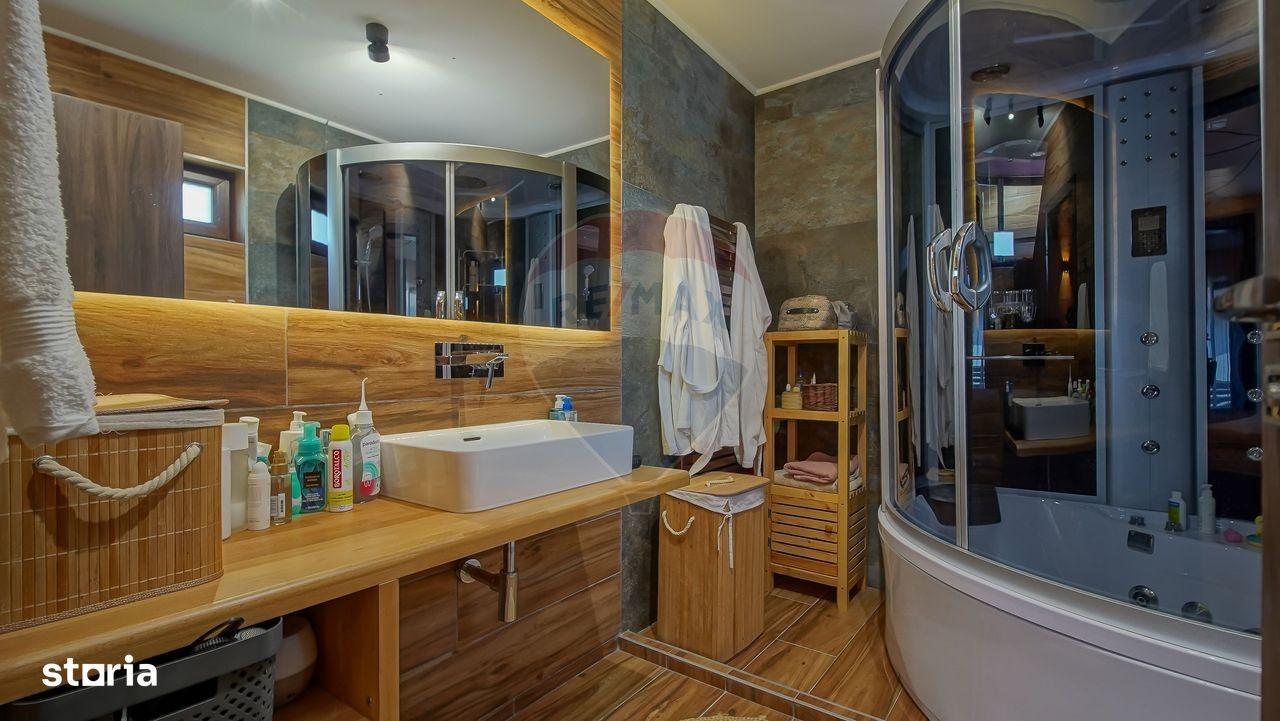 Bună ziua, sunt Zoltan Fejer consultant imobiliar în cadrul biroului Re/max Central și doresc să vă prezint spre vânzare o proprietate deosebită, situată în orașul Gimbav cu acces rapid din și către municipiul Brașov. O zonă de case noi, frumos aranjate ca pe o machetă la o prezentare a unui viitor proiect imobiliar. Nu este un proiect, ci un cartier elegant, amenajat primitor cu vecini faini și gospodari. Poate din poze toate casele par identice, dar nu și cea pe care doresc să o prezint. Atenția la detaliu dar și la dotări face ca această proprietate să iasă în evidență. Terenul este unul generos de 429 mp din care aproximativ 200 mp sunt amenajați cu gazon cu sistem de irigație. Pavajul în jurul casei, accesul auto cu poartă automatizată către carport și zona de terasă completează descrierea exterioară. Casa, construită în anul 2018 are un regim de înălțime parter și etaj, o suprafața utilă de 120 mp la care se adaugă suprafața totală a celor 3 terase. Este gândită să ofere confort și utilitate, fiecare spațiu, colțișor având rostul ei. La parter regăsim camera de zi de 37,7 mp utili care acomodează cu succes un superb și funcțional șemineu, bucătăria de 12 mp mobilată și echipată cu toate electrocasnicele necesare dar și un mic spațiu de depozitare și baia de serviciu cu duș. Total 63 mp utili. La etaj, cei 57 mp utili sunt “împărțiți” între cele două dormitorare matrimoniale cu băi separate și un dressing, dressing care tot un dormitor a fost, sau va fi, dacă veți dori. Podeaua este “îmbrăcată” cu mochetă, câțiva pereți cu parchet triplu stratificat, ies în evidență și caloriferele verticale, designul în sine fiind unul captivant. Avem toate utilitățile, gaz, canalizare, apă, curent/branșament trifazic, și panouri fotovoltaice de 12,45kw, invertor de 15kw și baterii de 15kw achiziționate anul acesta. Vă rog să parcurgeți cele 19 imagini din anunț, cu siguranță vor răspunde de la sine multor întrebări. Detalii suplimentare cu siguranță am, vă rog să mă contactați cu încredere! Tel:
