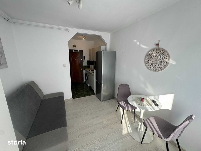 Proprietar inchiriez garsoniera in zona Soarelui cu centrala proprie pe gaz, peste drum de cladirea Saguaro, complet renovata recent, pe strada Maresal Constantin Prezan, etajul 4, langa magazinul Profi, la 2 minute de mers pe jos pana la Sud Plaza, aproape de Spitalul Judetean, Auchan, Lidl, Penny, Complexul Studentesc, multiple mijloace de transport in apropierea blocului. Garsoniera este complet utilata si mobilata, masina de spalat, frigider, aragaz, televizor lcd, clima, canapea extensibila, baie cu vana, rulouri exterioare. Cheltuieli foarte mici la intretinere. Se inchiriaza unei persoane serioase, nefumatoare, care sa stie sa mentina curatenia (fara animale de companie).