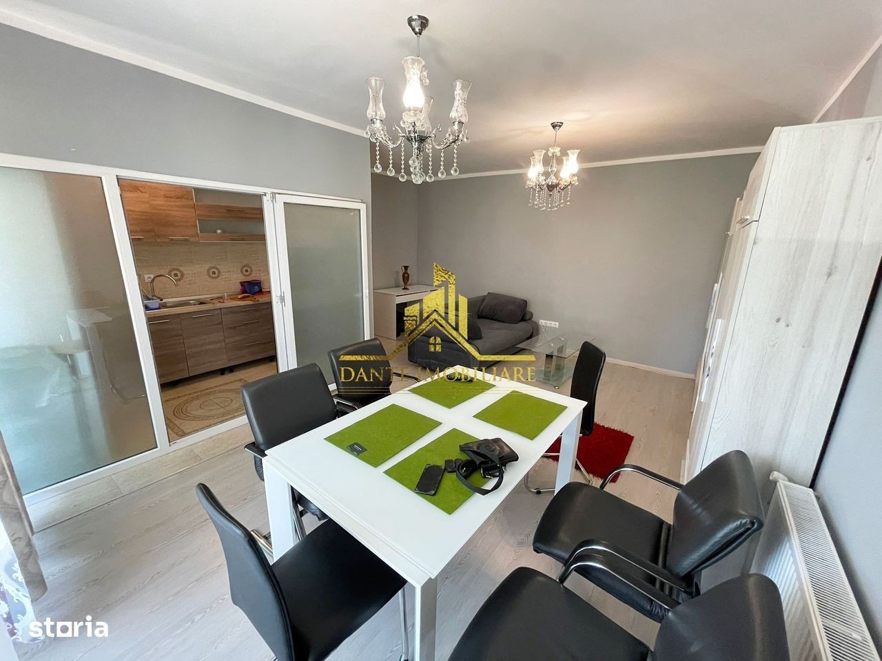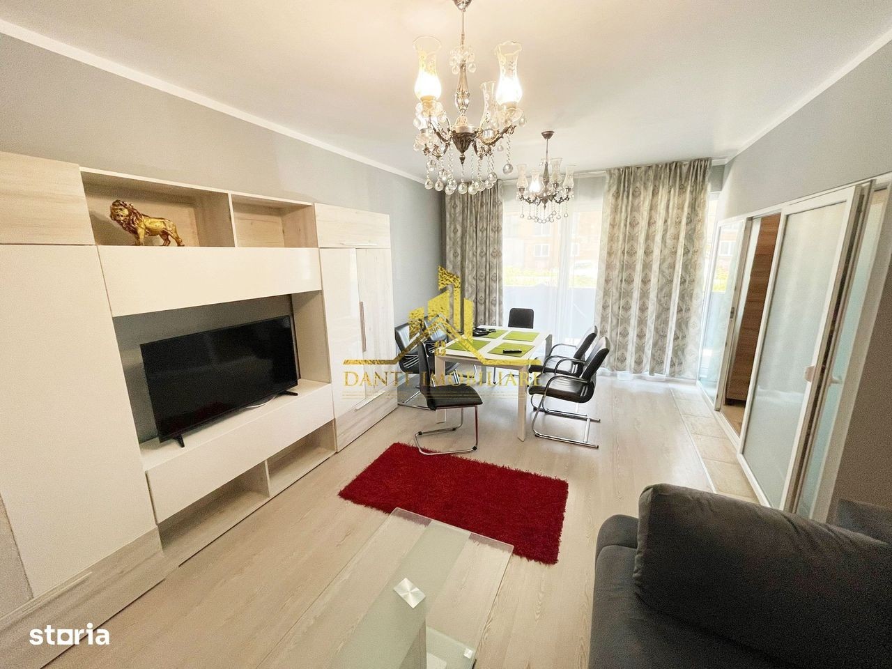 DANTE Imobiliare va propune spre inchiriere un apartament cu 2 camere, mobilat modern,intr-un imobil nou cu lift,avand o suprafata de 55 mp + balcon de 5mp. In apropierea apartamentului se afla statii de autobuz si magazine. Apartamentul este situat la parter din 3, are centrala proprie si compartimentarea acestuia este urmatoarea: - dormitor cu pat dublu, dulap pentru haine,comoda si TV - living cu open space cu coltar extensibil, TV, spatii de depozitare si TV - bucataria complet utilata si mobilata, dotata cu aragaz, hota si frigider - baie cu cabina de dus walk in In pretul afisat este inclus un loc de parcare subteran! Pentru vizionari sau detalii,va stam la dispozitie!