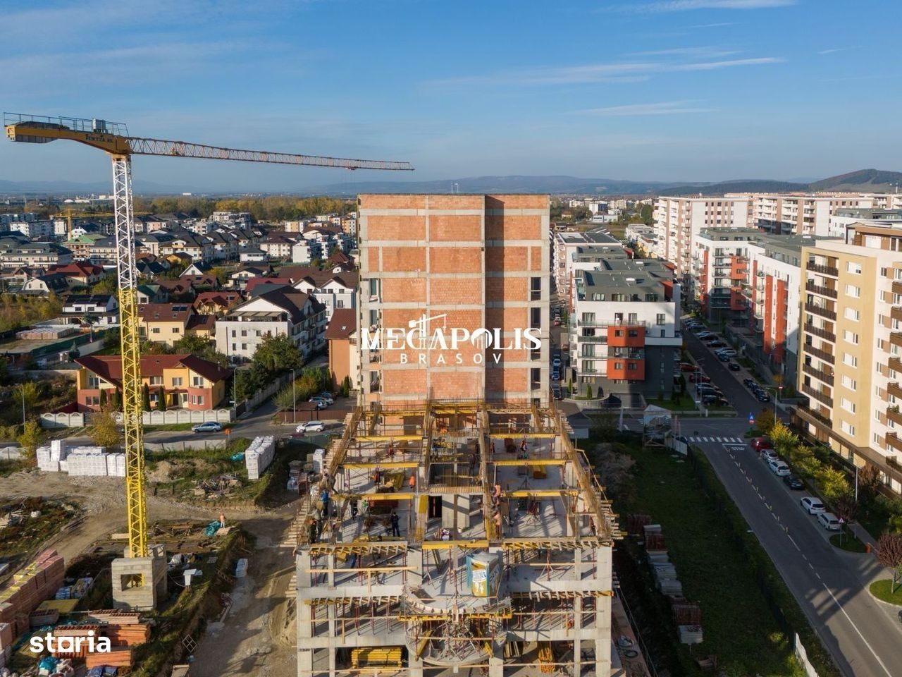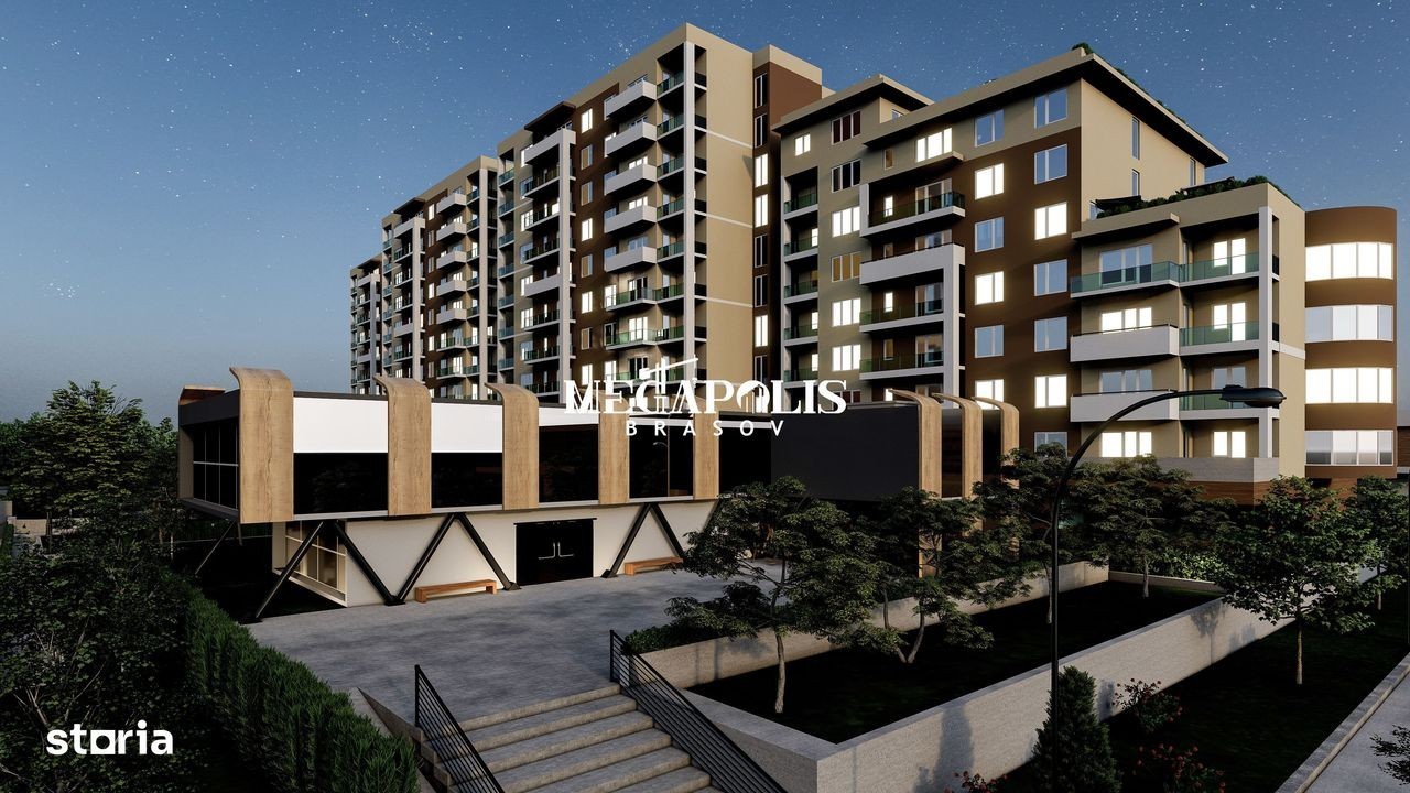 Apartament 2 camere - Tractorul, Brașov Suprafață utilă: 56,69 mp Balcon: 7,74 mp Etaj: 1 Termen de predare: Vara 2026 Se oferă spre vânzare un apartament modern cu 2 camere, situat într-un ansamblu rezidențial nou din zona Tractorul, Brașov. Localizare excelentă, cu acces rapid către Mall Coresi, transport public, supermarketuri și toate facilitățile urbane necesare. Compartimentare: - Living + Dining: 20,40 mp - Bucătărie: 9,00 mp - Hol 1 + Depozitare: 7,23 mp - Hol 2: 3,14 mp - Dormitor: 12,42 mp - Baie: 4,50 mp - Balcon: 7,74 mp * Aceeași structură este disponibilă pe mai multe etaje, iar orientarea poate varia în funcție de poziționarea fiecărei unități; pentru disponibilități exacte, vă rugăm să ne contactați. Suprafață totală: 64,43 mp Locuri de parcare disponibile: - Parcare subterană: 16.900 EUR + TVA - Parcare supraterană: 13.900 EUR + TVA Facilități ale complexului - Spații verzi și zone de relaxare - Grădiniță privată în ansamblu - Parcări subterane și supraterane Dotări premium - Izolație exterioară cu vată bazaltică - Încălzire în pardoseală în tot apartamentul - Acces securizat și supraveghere video - Spații comerciale la parter (supermarket, farmacie, salon) - Videointerfon smart cloud - Iluminat inteligent în spațiile comune - Stații de încărcare pentru mașini electrice - Ecopubele subterane și colectare selectivă - Rampe de acces pentru persoane cu dizabilități și cărucioare Pentru detalii și vizionări: