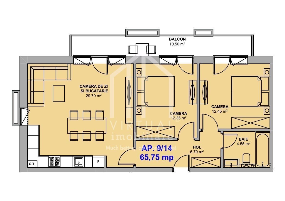 Apartament 3 camere - etaj 3, balcon 10.5 | incalzire in pardoseala |