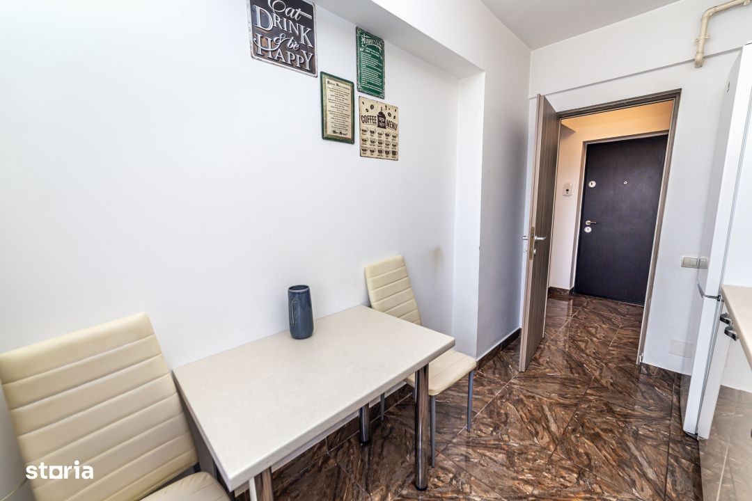 Garsoniera face parte din portofoliul Milluu, o platforma digitala care si-a propus sa simplifice experienta de inchiriere a unui apartament, de la gasirea si instalarea chiriasului, pana la ultima zi a perioadei de inchiriere. Inchiriind cu Milluu, vei face parte din comunitatea chiriasilor care folosesc tehnologia in avantajul lor, astfel incat contractul si restul documentelor se vor semna in aplicatie, iar pe parcursul contractului plata chiriei si a facturilor de utilitati se va afla la un click distanta. Si pentru ca si in cele mai moderne apartamente se pot ivi mici probleme, iti punem la dispozitie un pachet complet de asistenta si interventii tehnice de urgenta, care acopera orice defectiune a instalatiilor sanitare, electrice sau de termoficare. La final, pentru linistea ta, contractul de inchiriere contine si o polita de asigurare a tuturor bunurilor din apartament. Pentru mai multe informatii, poti accesa site-ul nostru Garsoniera complet mobilata si utilata, pregatita pentru mutare imediata. Garsoniera se afla in zona Progresul, la 20 minute distanta de Grand Arena Aceasta are suprafata utila de 29 mp si 4 mp balcon, este nedecomandata si se afla la etajul 2 al unui bloc de 5 etaje, construit in anul 2016. Facilitatile incluse sunt: bucatarie utilata, birou, aer conditionat, masina de spalat rufe, centrala termica, TV. Garsoniera este disponibila din 17.12.2025 Adresa exacta este: Str. Anghel Moldoveanu nr. 59A Nu sunt acceptate animale de companie. Fumatul nu este permis.