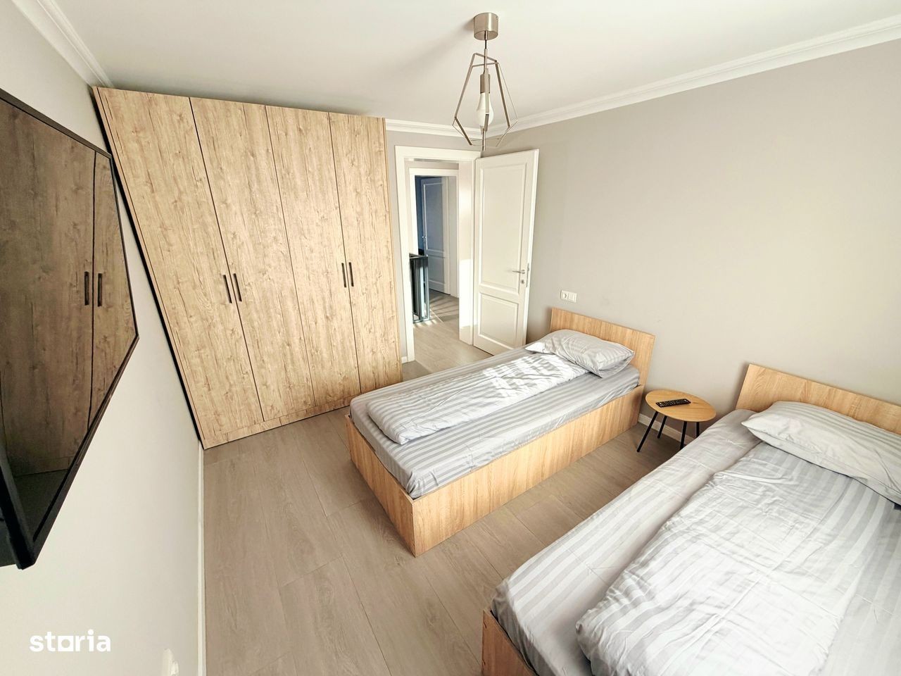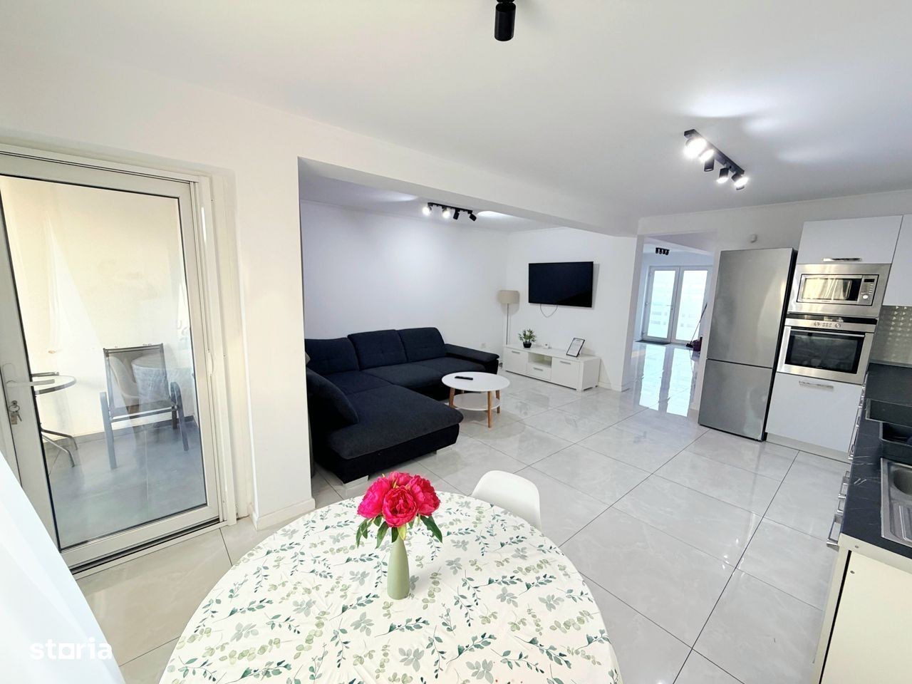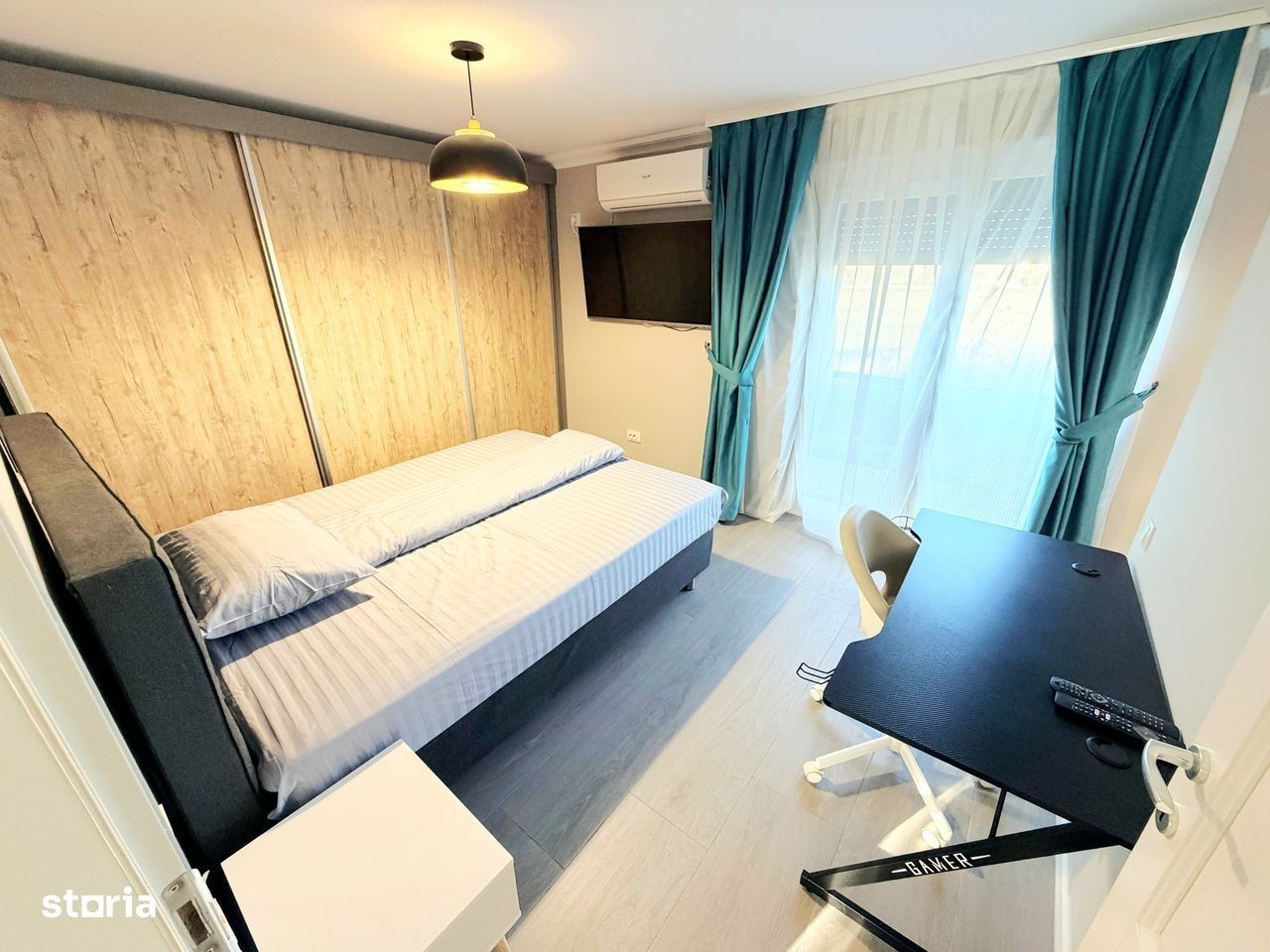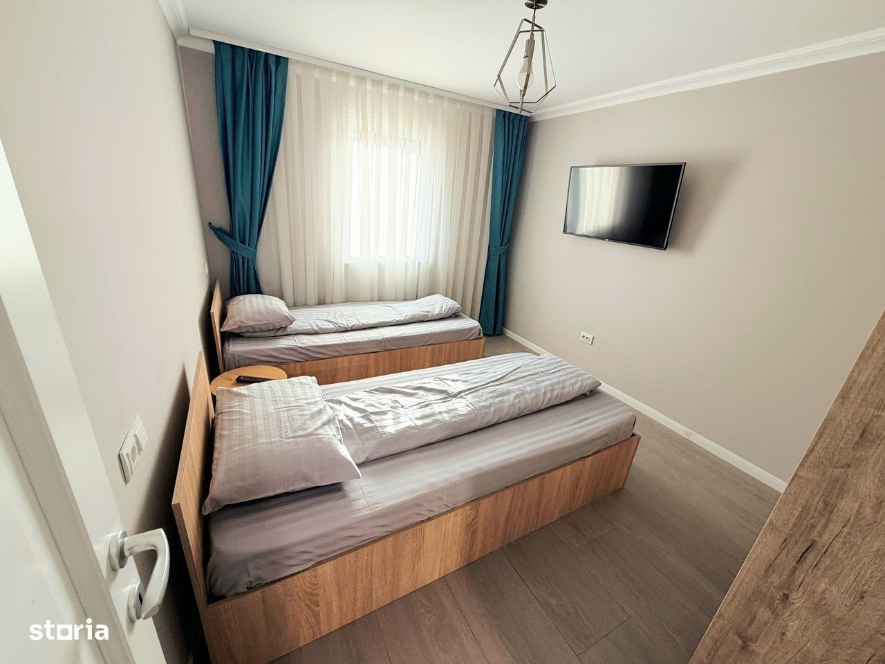 Va propunem la închiriere o casa modernă,compusă din:parter cu living room,bucătărie separată, 1 baie,ieșire pe terasă;etaj cu 3 dormitoare și 1 baie.Casa se închiriază mobilată și utilată în totalitate:Tv (in toate camerele),plită,cuptor electric,hotă,frigider,mașină de spălat vase,masină de spălat și uscat haine,aer condiționat.Casa este situată în cartier rezidențial Nicolae Grigorescu,la 3 min de Profi Market,LIDL,10 min de centrul orașului,iesire la centura.Confortul termic se face cu centrală proprie pe gaz,casa având costuri reduse de întreț fața casei sunt disponibile și 2 locuri auto.Preț 1200 euro.