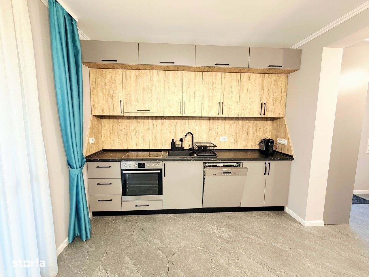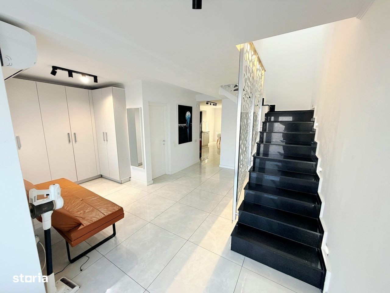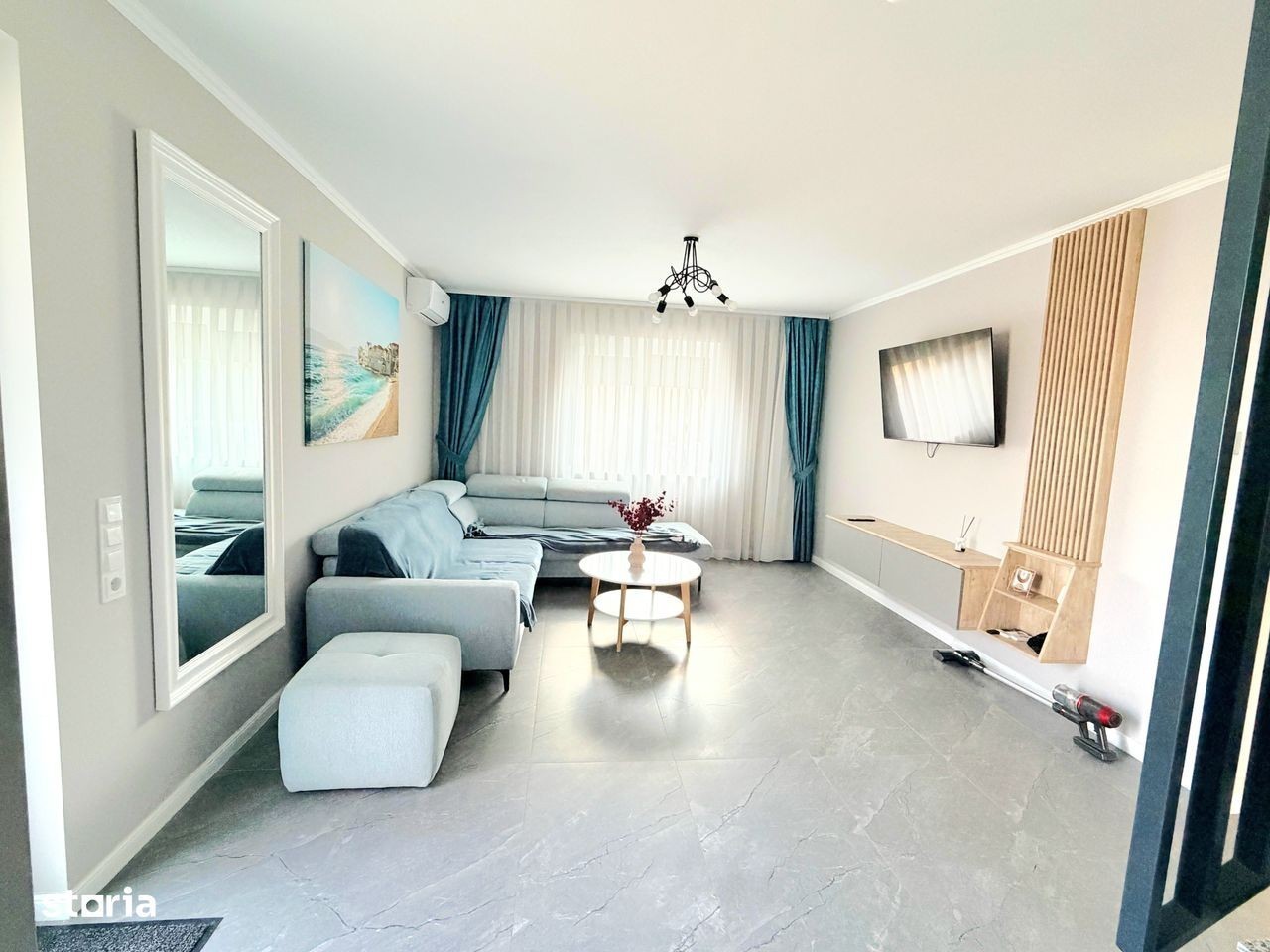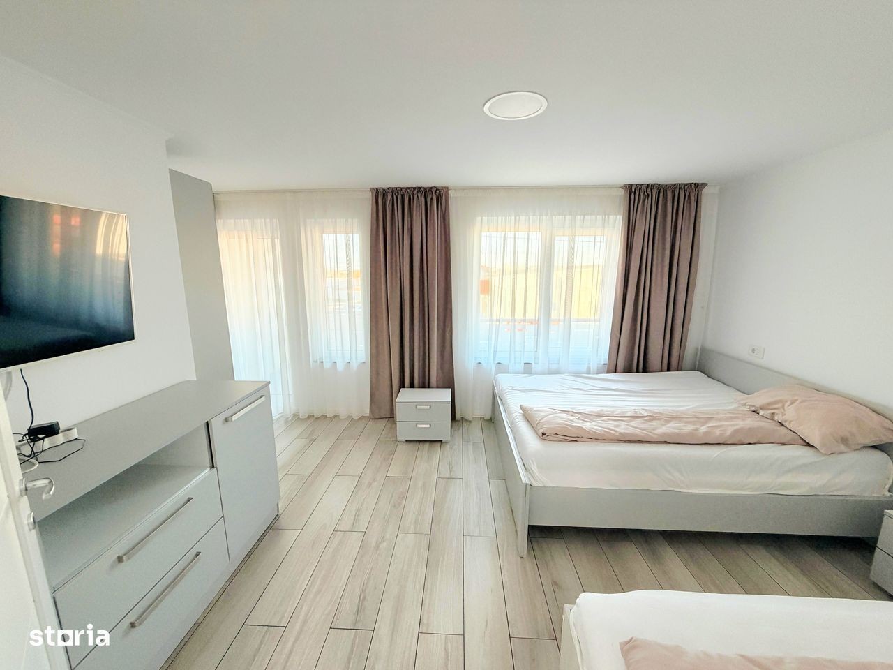 Va propunem la închiriere o casa modernă,compusă din:parter cu living room,bucătărie separată, 1 baie,ieșire pe terasă;etaj cu 3 dormitoare și 1 baie.Casa se închiriază mobilată și utilată în totalitate:Tv (in toate camerele),plită,cuptor electric,hotă,frigider,mașină de spălat vase,masină de spălat și uscat haine,aer condiționat.Casa este situată în cartier rezidențial Nicolae Grigorescu,la 3 min de Profi Market,LIDL,10 min de centrul orașului,iesire la centura.Confortul termic se face cu centrală proprie pe gaz,casa având costuri reduse de întreț fața casei sunt disponibile și 2 locuri auto.Preț 1200 euro.