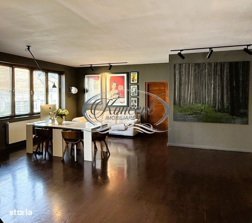 Koncept Imobiliare va ofera spre vanzare un apartament spatios situat in centrul Clujului, pe Bulevardul Eroilor, la etajul 2 al unei cladiri reprezentative prin arhitectura modernista interbelica, edificata in anul 1955. Fatada imobilului pastreaza elemente decorative specifice acestui stil, contribuind la farmecul aparte al zonei centrale si la valoarea patrimoniala a proprietatii. Cu o suprafața utila de 123 mp, la care se adauga o terasa de 9.6 mp si o logie de 4.7 mp, apartamentul impresioneaza prin spatii ample, luminoase si o compartimentare gandita pentru confortul locuirii urbane. Unitatea este compusa din 2 dormitoare, living generos, zona de dining, bucatarie separata, 3 bai, dressing, spatiu pentru depozitare si hol. Orientarea Sud-Nord asigura lumina naturala pe toata durata zilei, iar cele doua spatii exterioare ofera zone suplimentare pentru relaxare si aerisire. Proprietatea a fost renovata integral, iar finisajele sunt de calitate superioara, cu amenajari moderne si materiale atent selectate, pastrand in acelasi timp atmosfera distinctiva a cladirilor centrale. Apartamentul beneficiaza de centrala termica proprie si aer conditionat, iar compartimentarea flexibila permite adaptarea rapida a spatiilor, fiind potrivit atat pentru locuinta, cat si pentru activitati de birou. Vederea libera catre bulevard si spre curtea interioara accentueaza senzatia de spatiu si confort. Localizarea este unul dintre punctele forte majore: Bulevardul Eroilor reprezinta una dintre cele mai accesibile si vibrante artere ale orasului, cu acces direct la institutii, zone culturale, parcuri, restaurante, magazine si mijloace de transport. O astfel de proprietate, situata intr-o cladire cu arhitectura valoroasa si finisaje moderne, este ideala pentru cei care isi doresc o locuinta urbana rafinata sau pentru investitori interesati de spatii premium in centrul orasului. Pentru informatii suplimentare, programarea unei vizionari sau pentru a afla oferta noastra completa va stam la dispozitie telefonic, prin e-mail sau la sediul agentiei noastre, pe str. Aviator Badescu, nr. 19, Cluj-Napoca.