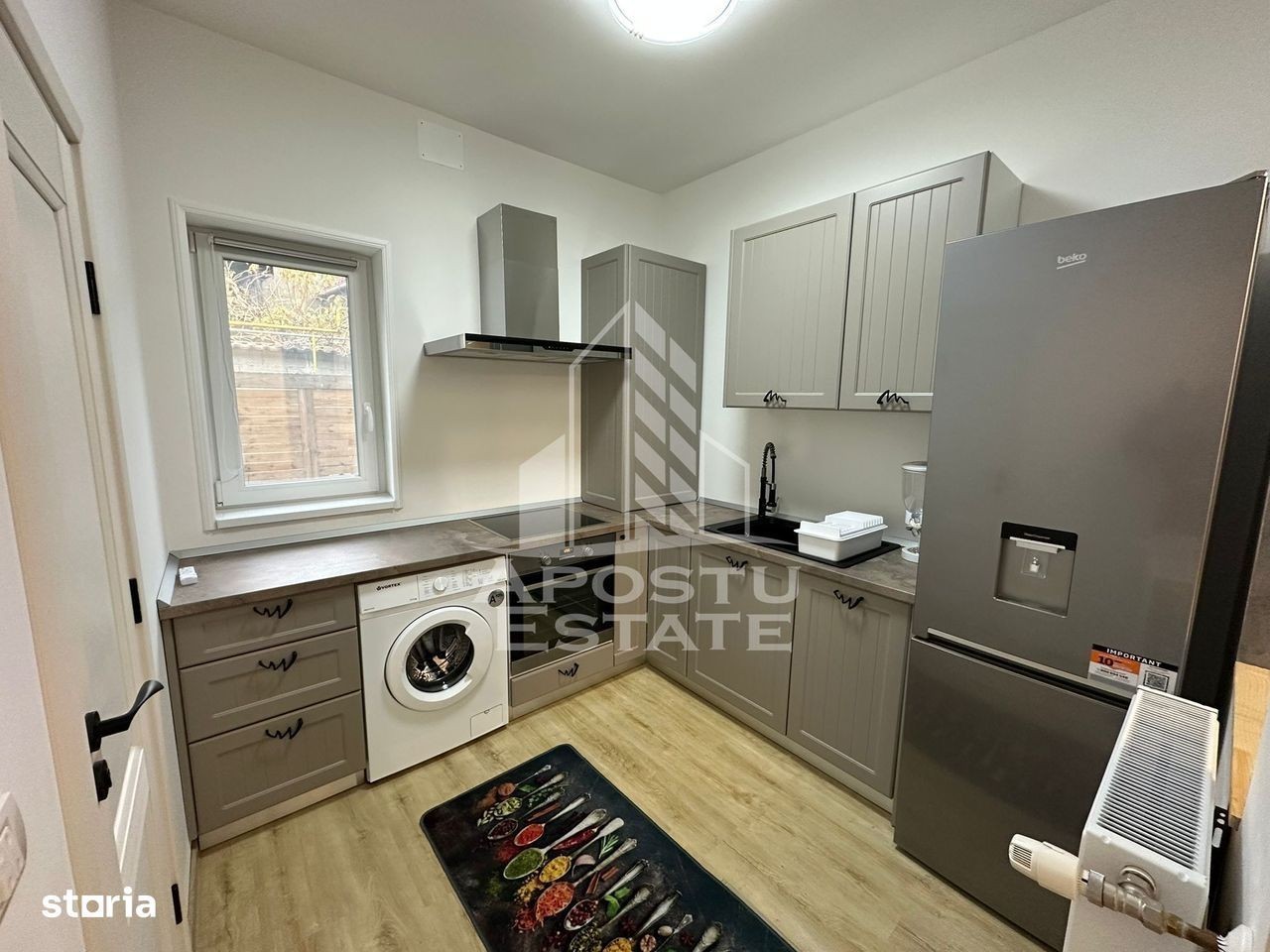 APOSTU ESTATE va propune spre inchiriere un apartament spatios si luminos, cu doua camere la casa Etaj: parter Compartimentare eficienta: -Bucatarie deschisa, complet mobilata si utilata -Doua bai dotate cu cabina de dus -Dormitor cu baie proprie -Geam la bai pentru ventilatie naturala -Numeroase spatii pentru depozitare Confort si facilitati: -Centrala proprie pe gaz -Incalzire prin calorifere -Aer conditionat -Aragaz, frigider, TV -Videointerfon -Apartamentul se inchiriaza mobilat si utilat Ideal pentru: -Cupluri -Persoane singure -Familii Pret chirie: 450 EUR + garantie Disponibilitate: imediata Programeaza o vizionare pentru a-ti putea imagina viitorul aici! ID intern: CP2838627