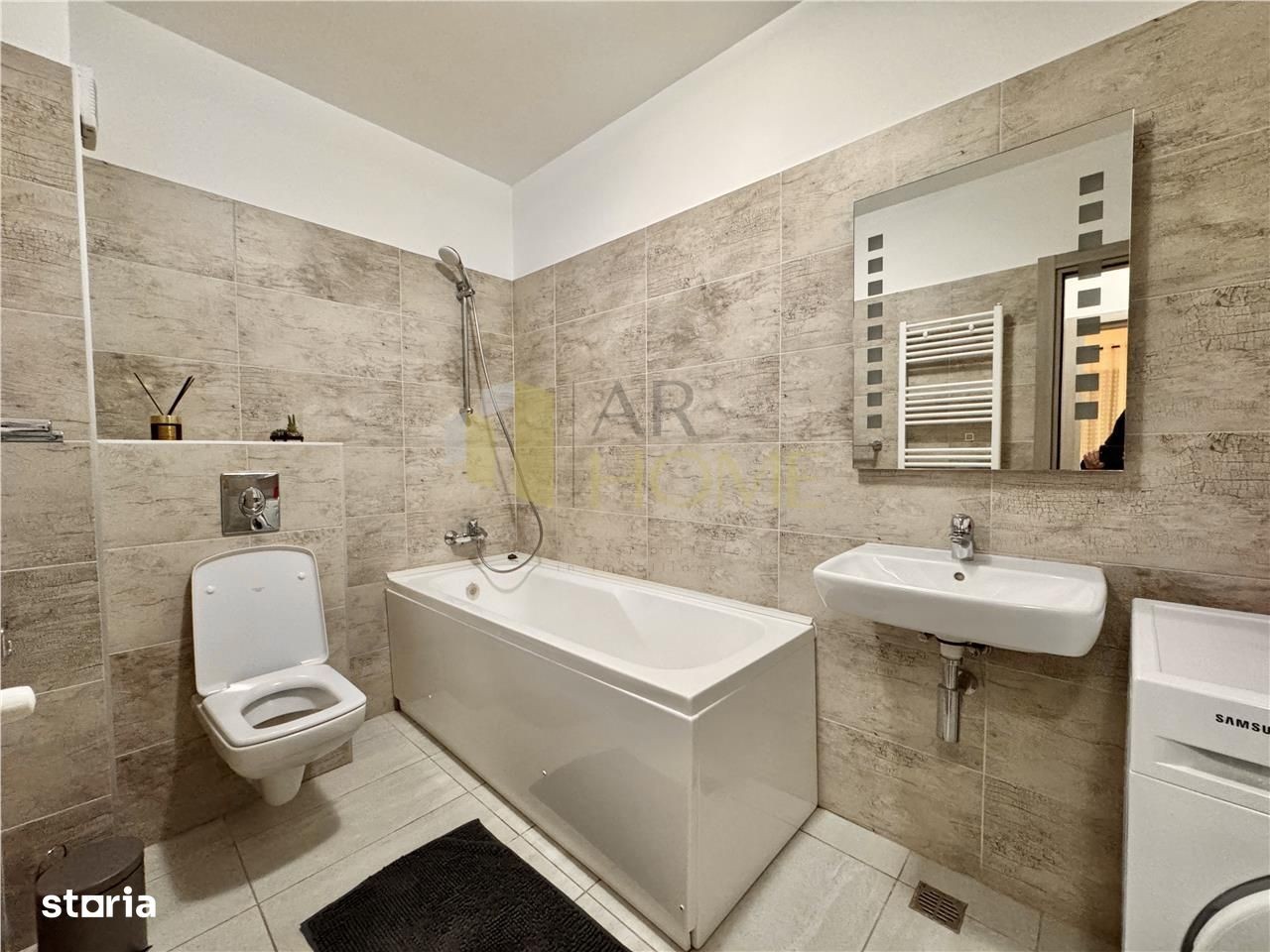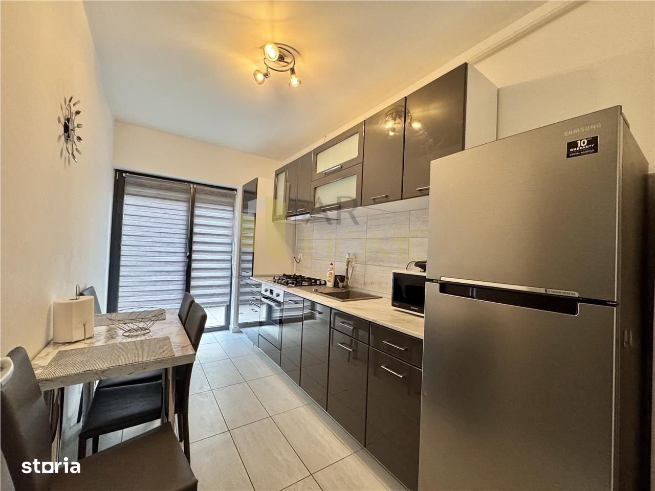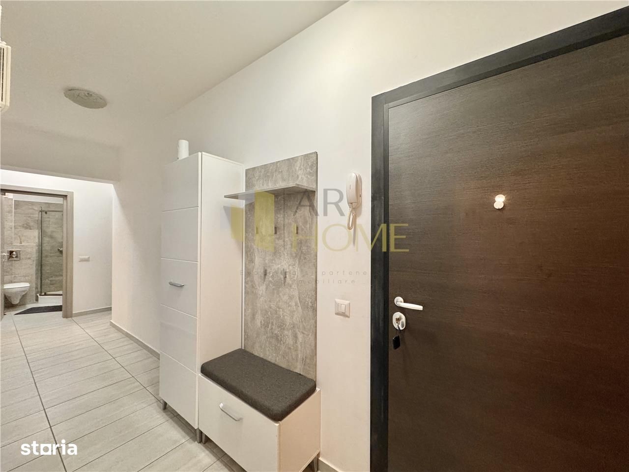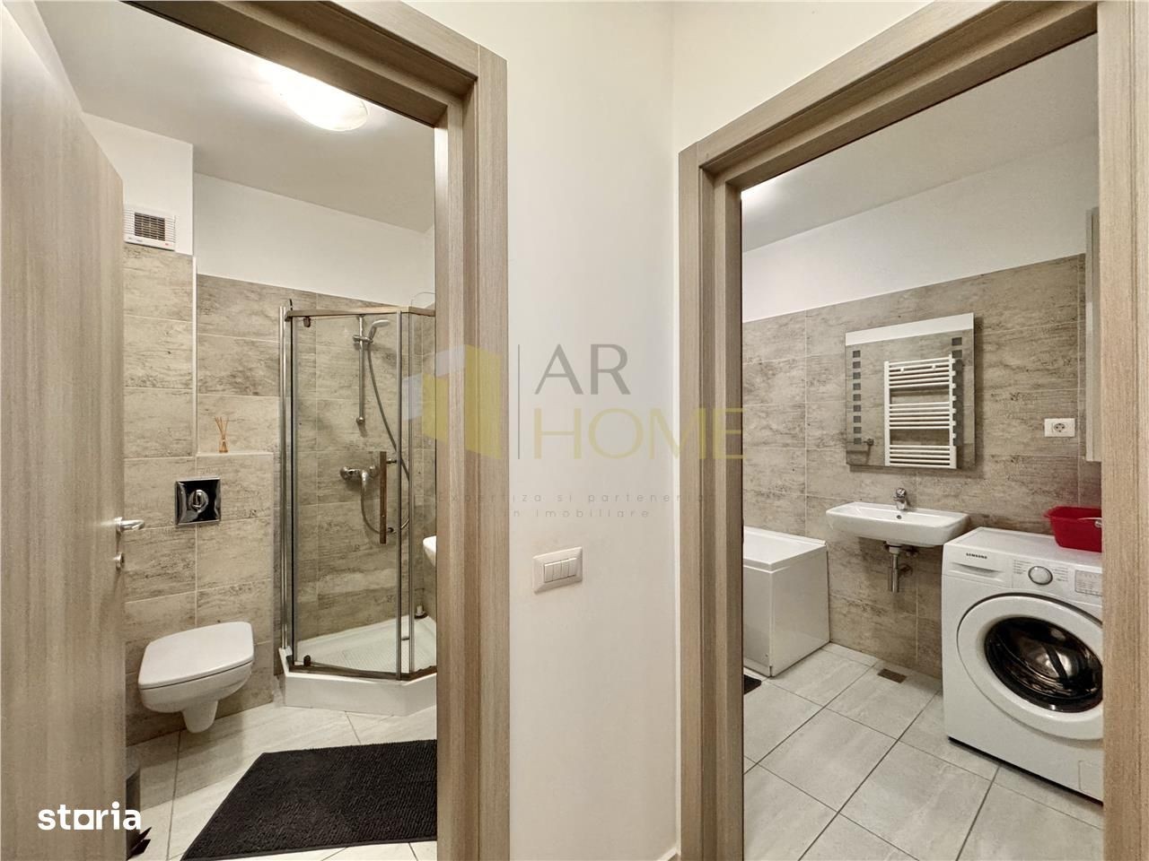 Inchiriere apartament 3 camere, modern, decomandat, complex MRS Smart - Cartier Albert, Ploiesti. Apartamentul este situat la parterul unui imobil cu structura S+P+5E, construit in anul 2021, dotat cu ascensor Schindler. Acesta beneficiaza de un loc de parcare suprateran privat. Imobilul este situat in cel mai modern complex de blocuri noi construite al orasului, unde beneficiati de restaurante, spatii verzi si locuri de joaca pentru copii, paza umana si sistem de supraveghere video, sala fitness cu piscina interioara, supermarket Kaufland. Locuinta are suprafata utila de 77 mp, plus terasa 6 mp, compartimentat astfel: camera de zi, un dormitor matrimonial, dormitor secundar, bucatarie separata, 2 bai, hol. Aceasta dispune de urmatoarele finisaje: rulouri exterioare automate, gresie si faianta Delta Studio, parchet lemn triplustratificat, usi interior MDF Porta Doors, usa intrare antiefractie Effe Class, tamplarie cu geam termopan tripan Salamander, vopsea lavabila. Incalzirea se realizeaza cu ajutorul centralei termice proprii, Vaillant, si a caloriferelor din otel, iar climatizarea cu ajutorul aparatului de aer conditionat de 12000 BTU. Apartamentul este mobilat complet si dotat cu masina de spalat rufe automata, plita, cuptor, hota, combina frigorifica, 2 TV-uri LED. Se inchiriaza la pretul de 650 EURO, lunar, plus garantie o luna.