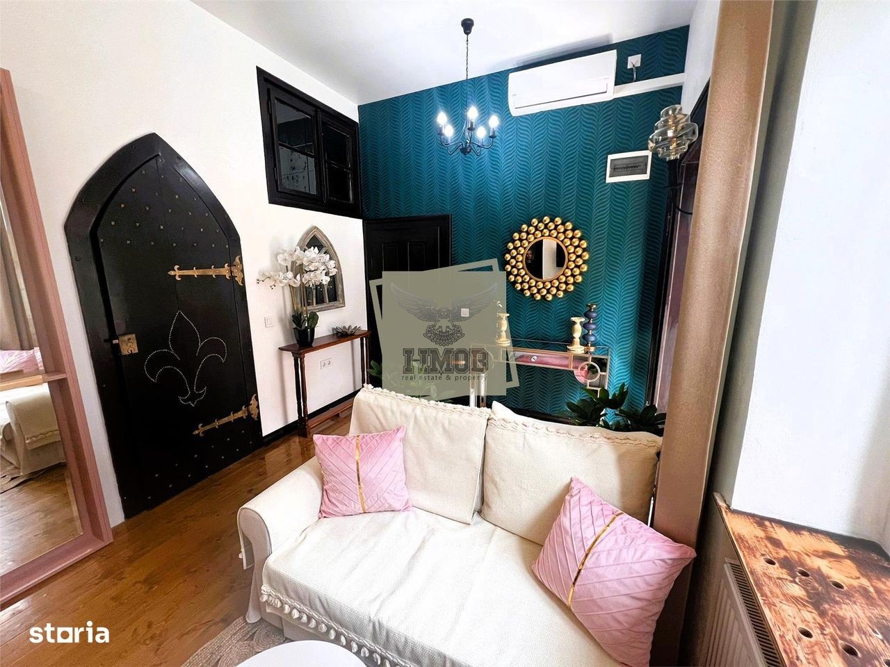 Agentia imobiliara I-Imob va propune spre inchiriere un apartament elegant, modern si foarte rar intalnit in centrul orasului - 55 mp, situat la etajul 1 al unei case istorice. Locuinta imbina perfect stilul clasic cu elemente premium, oferind confort si o atmosfera exclusiva. Ce ofera apartamentul: - Living spatios cu bucatarie open-space, amenajat cu mobilier modern si zona ideala pentru relaxare sau work-from-home - Dormitor luminos, cu pat matrimonial, dressing generos si finisaje premium - Bucatarie complet utilata: cuptor electric, plita, hota, frigider incorporat, cuptor cu microunde - Baie tip Spa, cu cada japoneza si design unic - Debara mare cu masina de spalat + uscator - Aer conditionat - Smart TV + internet fibra optica - Centrala proprie pe gaz Avantaje suplimentare: - Situat in centrul orasului, acces rapid spre Piata Mare, Piata Mica, restaurante, magazine, statii de autobuz - Curte comuna, ingrijita si linistita - Apartament renovat complet, cu mobilier si electrocasnice noi - Exclus: animale de companie Pret inchiriere: 500 EUR luna Pentru detalii si vizionari contactati echipa I-Imob ID intern: 5619