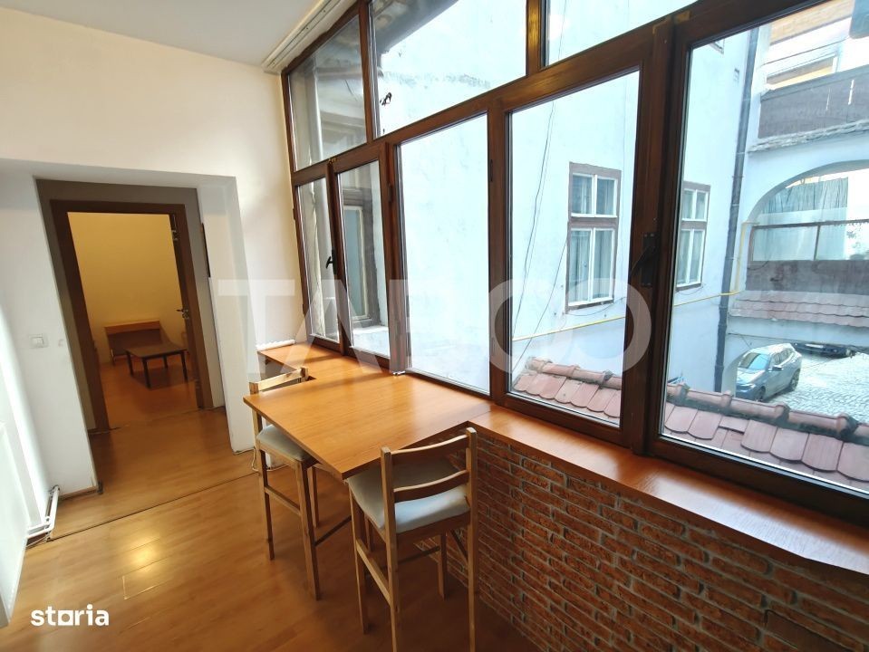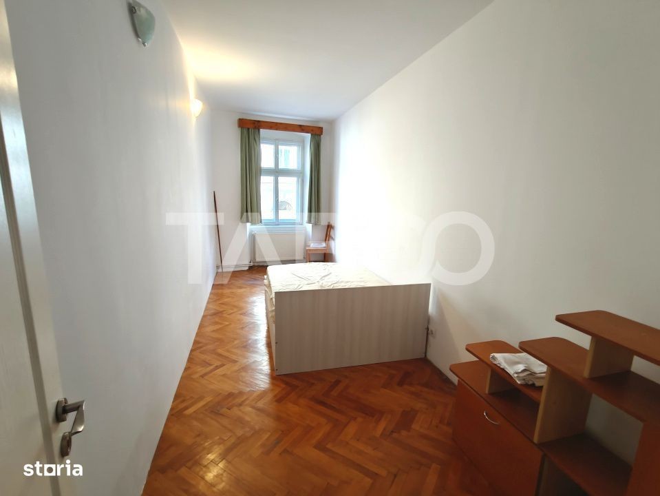 Apartament 3 camere de inchiriat, decomandat, 84 mp, zona Centrul Istoric, Sibiu, Comision 0%! Daca iti doresti o locuinta boema pe Bulevardul Nicolae Balcescu din Sibiu sau daca doresti sa subinchiriezi apartamentul in regim hotelier, atunci acest apartament poate fi potrivit pentru tine! • Locatie ultracentrala • Camere spatioase care se pot recompartimenta • Priveliste spre bulevard TABOO Imobiliare propune un apartament de inchiriat cu 3 camere, decomandat, situat in localitatea Sibiu, zona Centrul Istoric, aflat la etajul 1 intr -un imobil tip casa cu regim de inaltime pe Parter + 2 Etaje; anul constructiei 1870, structura caramida. Suprafata utila de 84mp. • Hol; • Bucatarie; • Baie; • Living; • 2 Dormitoare cu priveliste spre bulevard; • Camara; • Usa intrare: lemn; • Usi interioare: lemn; • Tamplarie ferestre: pvc, termopan; • Pereti: vopsea lavabila, faianta; • Podele: parchet, marmura. • Bucatarie: mobilata, partial utilata; • Mobilat: complet; • Utilitati: curent electric, apa, canalizare, gaz, catv, acces internet, fibra optica; • Contorizare: apometre, contor gaz, contor curent electric; • Caracteristici casa/vila: acoperis, curte comuna, senzor de fum. Apartamentul se inchiriaza semimobilat si partial utilat cu: frigider, aragaz, cuptor, masina de spalat rufe. Incalzirea se realizeaza prin centrala proprie, calorifere. Se accepta subinchiriere, animale de companie, fumatori. Pentru a se inchiria acest apartament se achita proprietarului chiria + o luna garantie. Pret: 360€ Sună-ne acum și află detalii despre această proprietate de inchiriat din Sibiu, dar și despre alte proprietăți potrivite pentru tine.