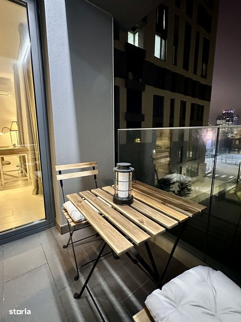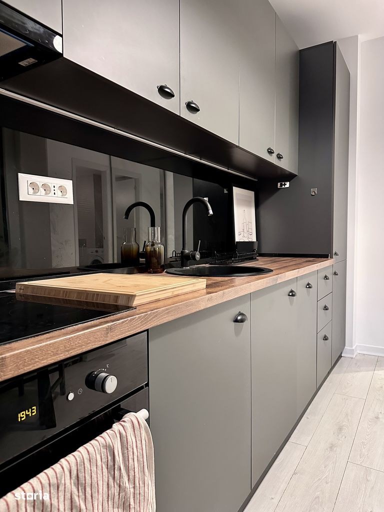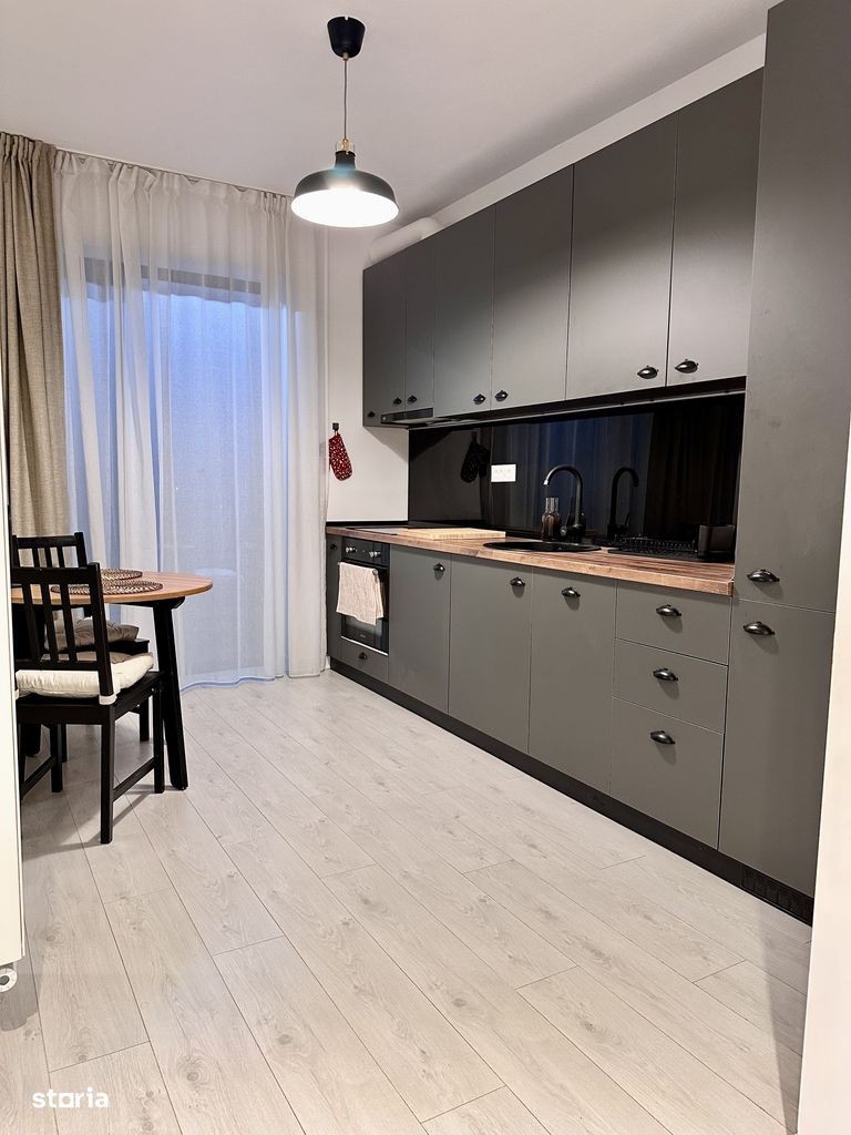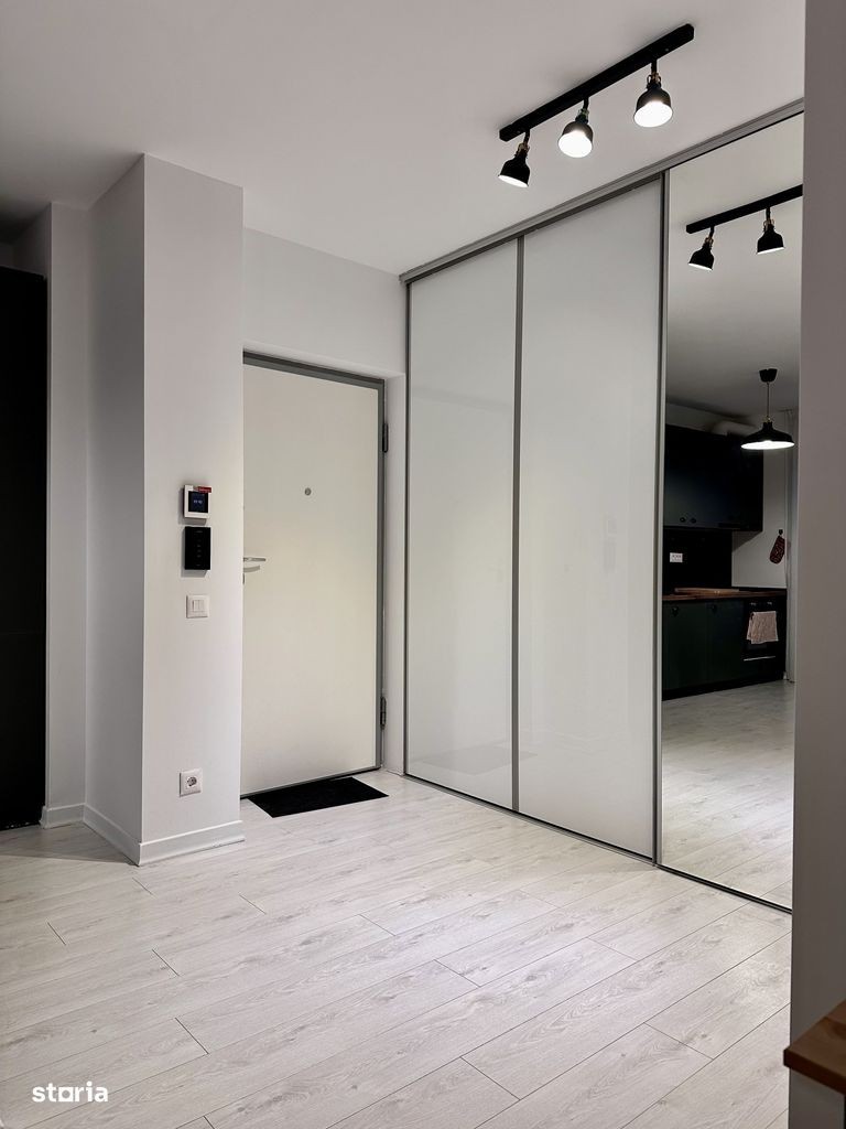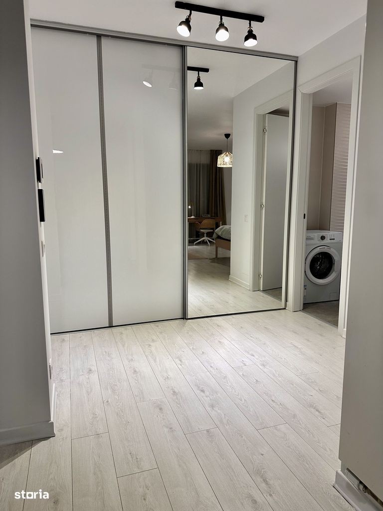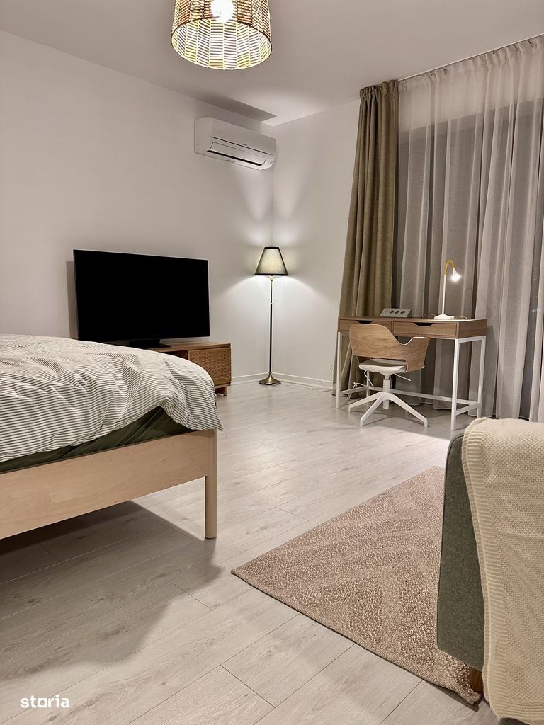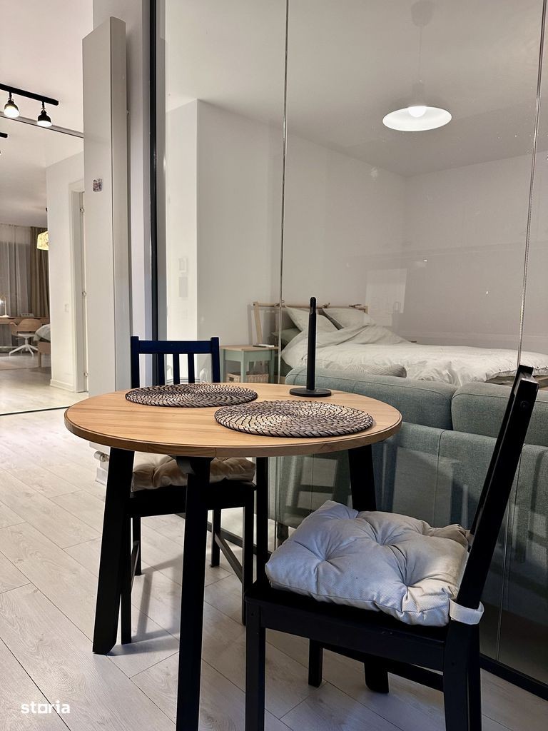 Garsonieră de 42 mp utili în Cloud9 Residence, pe Șoseaua Pipera 61, poziționată la etajul 1, cu o vedere deschisă și liniștită. Clădirea este finalizată în 2021, iar locuința a fost proaspăt zugrăvită în decembrie 2025, astfel încât arată curat și îngrijit. Spațiul este organizat simplu și practic. Camera de zi are mobilier nou, ales astfel încât să fie confortabil, dar fără să încarce încăperea. Pentru depozitare există un sifonier mare, foarte util pentru cine stă pe termen mai lung. Bucătăria este complet utilată: plită și cuptor încorporate, frigider incorporat, mașină de spălat vase și suficiente spații de depozitare. Baia are cadă, iar prezența geamului face o diferență importantă pentru ventilație și confort. Balconul are 3.6 mp, iar locul de parcare inclus este în subteran, la nivelul -2, accesibil ușor din bloc. Reguli de închiriere: - Contract minimum: 12 luni - Prima plată: 1 lună avans + 1 lună garanție - Comision agenție: 50% din valoarea unei luni de chirie