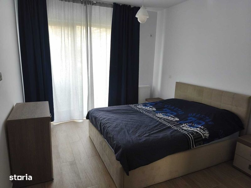 Se inchirieaza apartament cu 2 camere de 56 mp + 9 mp de terasa (balcon) situat in zona de nord a orasului, cartier Albert. Apartamentul se afla la parterul unui bloc cu 4 etaje este mobilat conform pozelor atasate, are centrala, aer conditionat si dispune de loc de parcare privat (suprateran). 470 euro pe luna garantie - chiria pe o luna