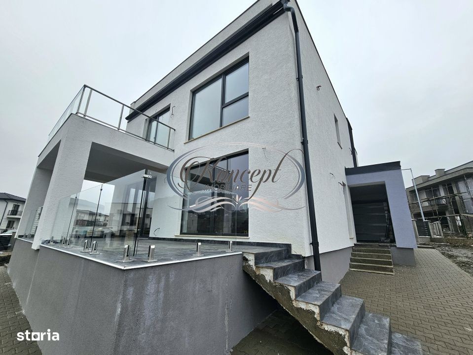 Koncept Imobiliare va ofera spre vanzare o casa individuala situata in Popesti, intr-o zona linistita, cu aer curat si acces facil spre Cluj-Napoca. Proprietatea se afla intr-un cadru privilegiat, beneficiind de un drum privat generos, cu latime de peste opt metri, iluminat public si sens giratoriu la capat. Casa are orientare mixta, ceea ce asigura lumina naturala pe tot parcursul zilei si o vedere placuta spre padure si sat. Imobilul este amplasat pe un teren de 600 mp, oferind un stil de locuire confortabil si echilibrat, cu un regim de inaltime parter + etaj si o suprafata utila de 117 mp, la care se adauga doua terase si un balcon ce totalizeaza 40 mp. Casa se preda in stadiu semifinisat, cu zidarie din caramida, structura din beton armat, izolatie exterioara cu polistiren de 15 cm, acoperis cu tigla metalica Bilka, geamuri termopan Rehau si incalzire in pardoseala pe ambele niveluri. Parcarea acoperita de 25 mp poate fi transformata cu usurinta in garaj inchis, iar in curte sunt disponibile inca doua locuri de parcare. Montarea usilor de garaj se poate monta contra cost. Compartimentarea este gandita eficient pentru confortul unei familii. La parter regasim un hol de acces, living cu bucatarie open space, camera tehnica, baie si o terasa acoperita de 22.5 mp cu iesire direct in curte, ideala pentru relaxare si petrecerea timpului in aer liber. La etaj se afla trei dormitoare luminoase, 2 dressing-uri, doua bai, un balcon, o terasa de 12 mp cu priveliste catre padure, precum si un pod spatios de 40 mp destinat depozitarii. Curtea se preda amenajata cu gazon insamntat, iar proiectul include un parc privat de 500 mp destinat exclusiv celor opt case individuale din ansamblu. Printre elementele care diferentiaza aceasta proprietate se numara designul exterior modern, compartimentarea foarte bine gandita, terasele generoase si atmosfera speciala oferita de vecinatatile formate din case noi si accesul imediat la natura. Proprietatea dispune de utilitati complete - apa, gaz, curent, canalizare - iar pentru reducerea costurilor, exista optiunea instalarii de panouri voltaice si pompa de caldura, cu galerii deja pregatite pentru automatizarea portii auto. Este o alegere excelenta pentru familii care cauta liniste, aer curat si proximitate fata de oras, dar si pentru cei care isi doresc o locuinta individuala bine construita, intr-o zona in dezvoltare controlata si cu acces rapid la punctele importante din Cluj-Napoca. Pentru informatii suplimentare, programarea unei vizionari sau pentru a afla oferta noastra completa va stam la dispozitie telefonic, prin e-mail sau la sediul agentiei noastre, pe str. Aviator Badescu, nr. 19, Cluj-Napoca.