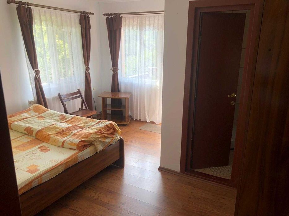 *Exclus agenție imobiliară. Mulțumesc pentru înțelegere!* Proprietar, vând casă de vacanță în comuna Moieciu de Jos cu priveliște la creasta Pietrei Craiului, Județul Brașov. Se pretează și ca pensiune. Casă P+E+M Tip clădire: singur in curte; An construcție: 2004; Stare: gata de utilizare; Tip proprietate: locuință utilizată; Suprafața construită: 225 mp; Amprenta la sol: 75 mp; Material construcție: Parter + Etaj - BCA, Mansardă - lemn. Tip izolație: Polistiren 10 cm Material acoperiș: țiglă ceramică Tâmplărie: Uși și geamuri din termopan Suprafață teren: 644 mp. Utilități: Curent electric, apă (de izvor - gratuită pe viață), fosă septică din beton, încălzire prin centrală pe lemne - posibilitate de racordare la gaze naturale, internet prin fibră optică. Casă dispusă pe trei nivele: Parter + Etaj + Mansardă și compartimentată astfel: Parter - living cu bucătărie, hol, baie de serviciu, cămară, dormitor cu baie individuală; Etaj: hol, 3 dormitoare cu băi individuale; Mansardă - hol, două dormitoare, baie comună, spații de depozitare; Toate dormitoarele de la etaj și mansardă au ieșire în balcon; Număr încăperi: 1 living cu bucătărie 4 dormitoare cu 4 băi individuale 2 dormitoare cu baie comună 1 baie de serviciu 1 cămară 3 holuri 4 balcoane 5 spatii de depozitare în casă 1 spațiu de depozitare în casă 1 beci Anexe: 1 terasă mare acoperită (26 mp) la intrare în casă, 1 foișor lângă casă, 1 magazie la intrare în curte și 1 cameră tehnică în spatele casei. Casa este situată într-o zonă foarte liniștită și intimă, departe de zgomotul de la drumul principal și la cel puțin 100 m de Drumul Mic. Accesul pe proprietate se face pe drum de servitute. În spatele casei există un deal împădurit. Proprietatea oferă o priveliște deosebită asupra crestei Pietrei Craiului. Terenul are suprafața de 644 mp. (Casa se vinde mobilată astfel: complet mobilată în bucătărie, living, 5 dormitoare și baie. Din unul dintre dormitoare va lipsi patul. De asemenea, în casă rămân mașina de spălat, 2 frigidere, 1 aragaz cu butelie și câteva televizoare.) Pe teren există aproximativ 15 pomi fructiferi printre care meri, pruni, nuc, tei, gutui, vișini. Proprietatea se adresează unei familii numeroase/celor care doresc să își deschidă o pensiune în inima naturii/ celor care își doresc pur și simplu o casă de vacanță la munte, într-o zonă extrem de liniștită și retrasă, dar care se află, totuși, foarte aproape de locații de necesitate: primărie, școală, grădiniță, Mega Image, La Doi Pași, aprozar + magazin alimentar, magazin materiale construcții - toate la 3 minute de mers cu mașina. Farmacie, biserică la 5 minute cu mașina. Magazin mixt la 3 minute de mers pe jos. Penny și benzinărie Rompetrol la 8 km în Tohanu Nou. Piața, bancomatele CEC și BT, precum și Castelul Bran și celelalte obiective turistice din Bran la 5 km. Preț: 160.000 euro. Pentru fotografii și detalii suplimentare, vă rog să mă contactați prin platforma OLX, sau la tel. 07******73.