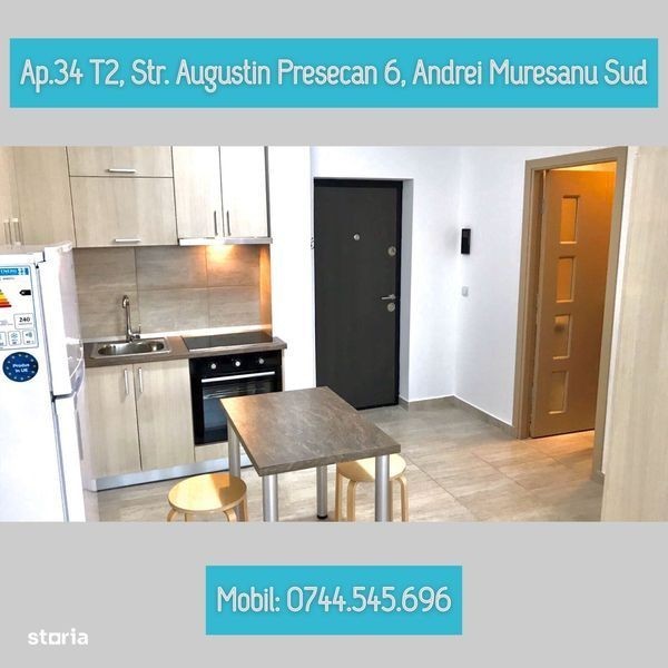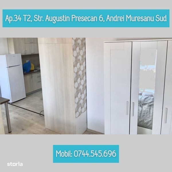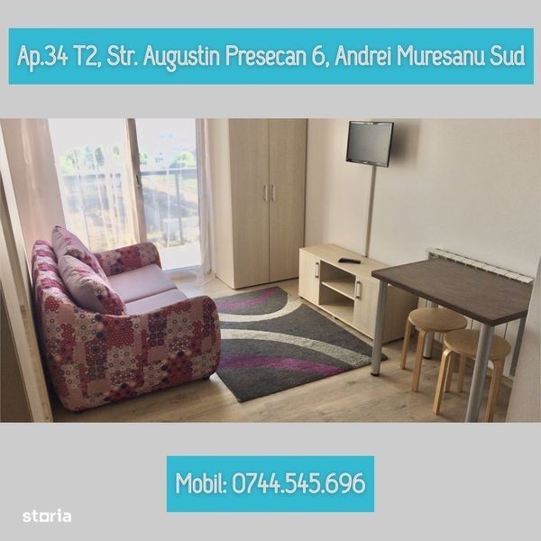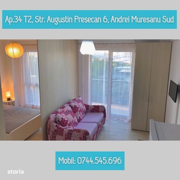 PF vând apartament cochet, utilat si mobilat, 35 mp, dormitor separat de living, sofa extensibila si in living, situat in complex Andrei Muresanu Sud, aproape de centrul comercial Sigma, etajul 3. In zona: banci, restaurante, sali sport, statii autobuz, clinici, supermaket. Nu dispunem de parcare. Nu dorim intermediari. Ne dorim exclusiv cumparatori fara credit. Se poate prelua cu chirias in orice moment.