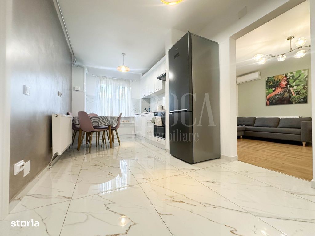 Apartament finisat modern in zona Academiei de Muzica, Cluj-Napoca Va propunem spre vanzare un apartament in cartierul Manastur, zona Bucium. Apartametnul este bine pozitionat la etaj intermediar 3 din 4, are orientare vestica si este in imediata proximitate a mijloacelor de transport in comun. Apartamentul are o suprafata utila de 70 mp si este compartimentat astfel: - 1 bucatarie; - 1 living cu balcon; - 2 dormitoare; - 1 hol; - 1 baie. Confotul termic al apartamentului este cu centrala termica proprie cu incalzire prin calorifer. Apartamentul se preda mobilat si utilat conform fotografiilor, beneficiaza si de o boxa la subsol pentru depozitare, are disponibilitate imediata iar achizitia se poate face atat din surse proprii cat si din credit bancar fiind liber de sarcini. Pentru mai multe detalii, ne puteti contacta cu incredere! Echipa Napoca Imobiliare ID proprietate: VA3 157265