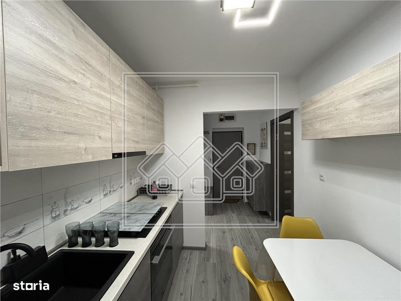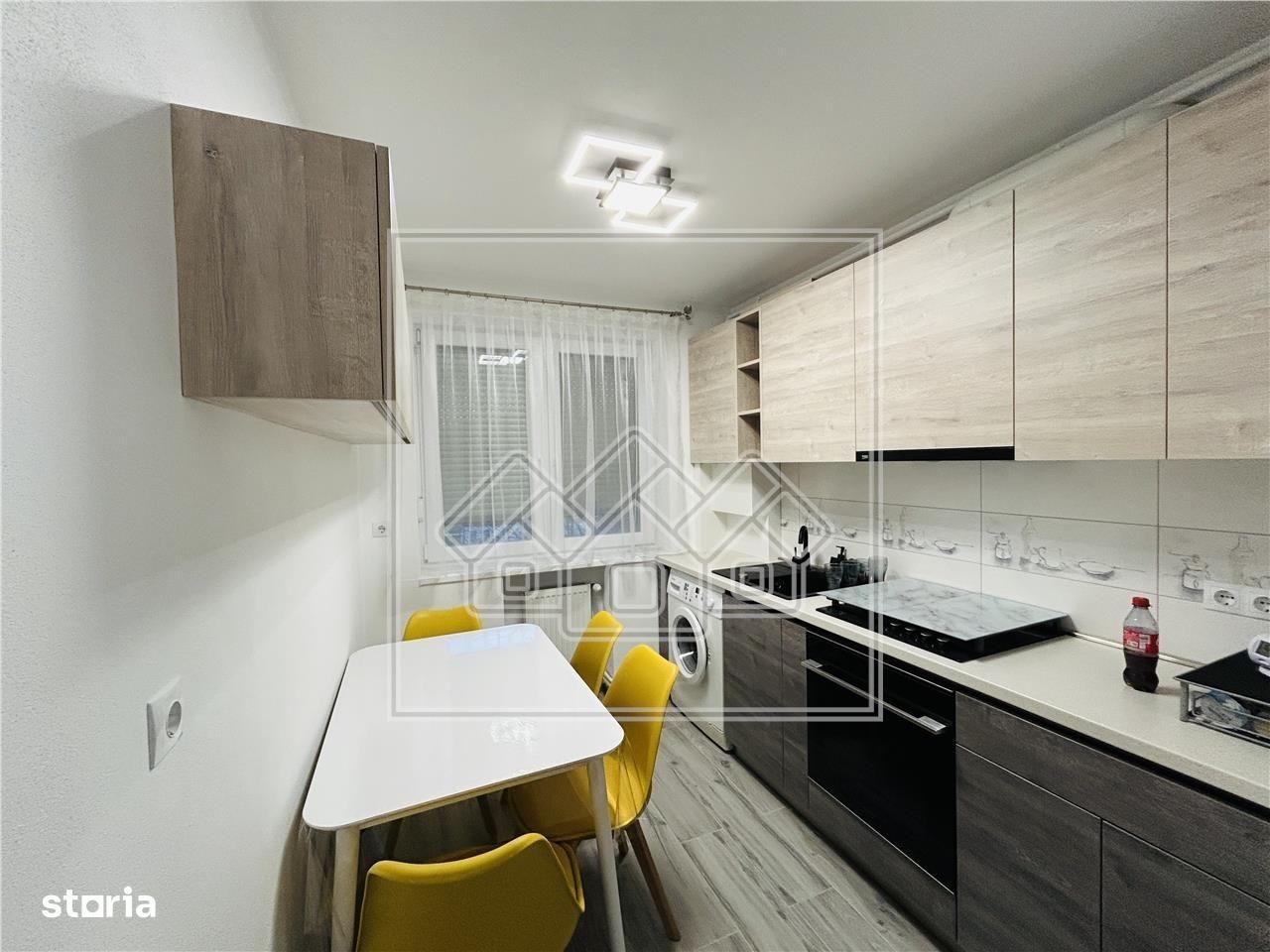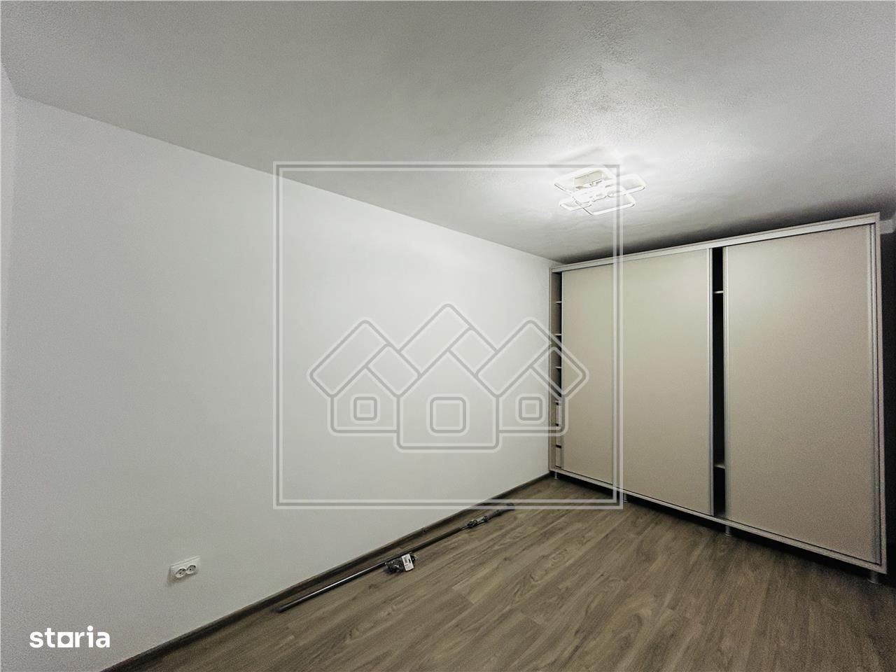 De vanzare apartament complet renovat, situat in Cisnădie, intr-o zonă liniștită, foarte aproape de Profi și puncte de interes. Detalii apartament: 55 mp utili balcon inchis (3 mp) etaj 4 4 decomandat complet renovat Compartimentare: hol, living cu ieșire in balcon, dormitor, bucătărie separată, mare, baie si debara Dotări: - balcon inchis - termopan - ușă metalică - finisaje moderne Apartamentul se vinde mobilat și utilat, exact ca in poze. Ideal pentru locuit sau investiție. ID intern: 23003