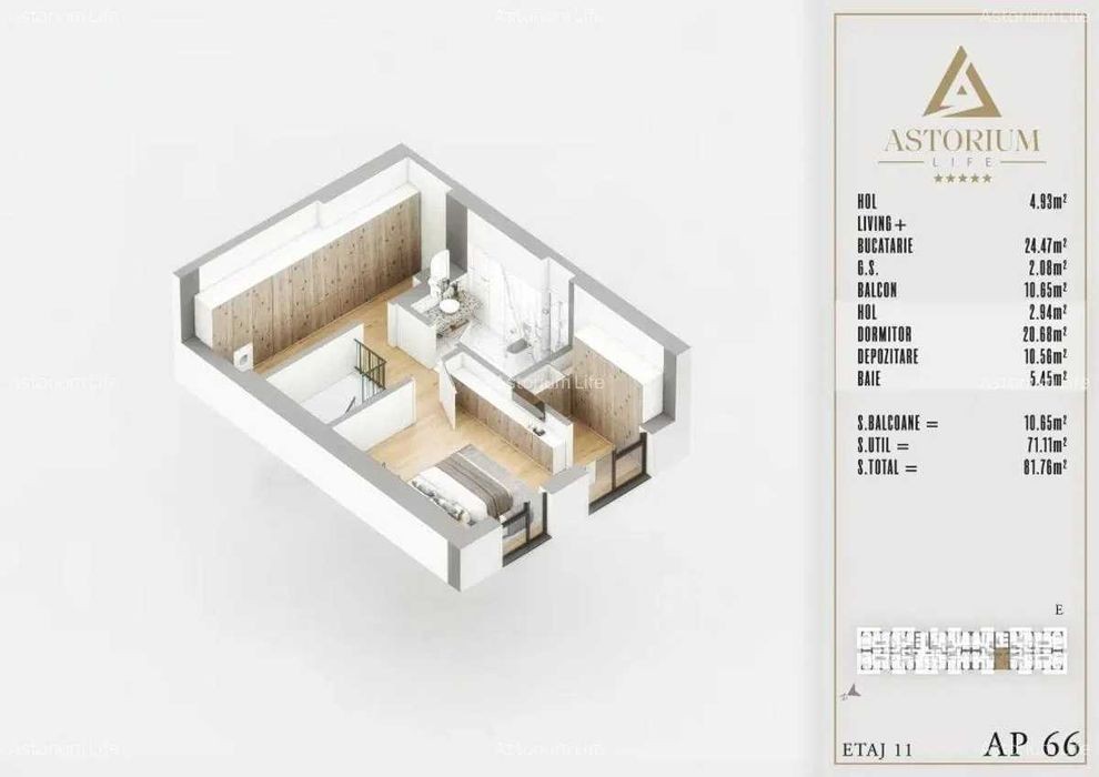 Vezi mai multe unitati disponibile direct pe site astorium.ro Apartamentul are o suprafata de 81.49 mp utili si este dotat cu finisaje premium, pretul nu include TVA: - Încălzire în pardoseală - Geam Tripan - Izolație fonica in apartament cu vata bazaltica - Compartimentare cu zidărie - Izolație exterioara vata minerala 15 cm - Băi complet echipate cu obiecte sanitare GEBERIT Cel mai recent proiect al nostru, Astorium Life, este și cel mai impunător de până acum. Complexul upper premium, cu 700 de apartamente, va fi construit în sectorul 3, în zona Bulevardului Theodor Pallady Am gândit proiectul special pentru cei care caută o locuință elegantă și modernă, cu spații verzi extinse și diverse facilități de petrecere a timpului liber. Noul complex va avea o arhitectură rafinată, iar apartamentele vor fi spațioase și compartimentate inteligent, cu finisaje de calitate superioară, pe care ți le vei putea alege chiar tu. În plus, pentru confortul tău, îți punem la dispoziție încălzire în pardoseală și infrastructură pentru smart home gata instalată. Vizionarile si achizitia se fac direct la dezvoltator: 07******05