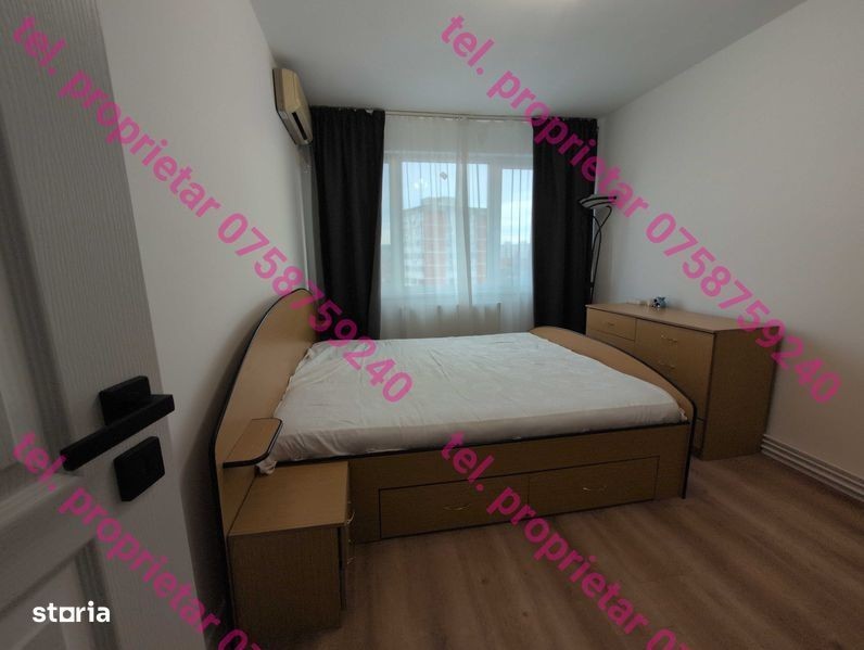 Proprietar, inchiriez apartament cu doua camere, aflat la etajul 7 cu vedere spre est, situat pe Bd. Cetatii. Mobilierul si amenajarile sunt noi. Foarte eficient dpdv al consumului de energie, la o temperatura ambientala de 21 de grade consumul pe luna Noiembrie a fost sub 10 lei. Apartamentul este utilat complet. Confortul termic este asigurat de centrala termica proprie si doua aparate de aer conditionat. Nu doresc chiriasi cu animale de companie si nu vreau colaborare cu agentii. Multumesc pentru intelegere.