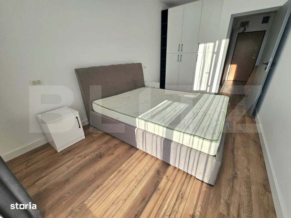 Blitz vă prezintă pentru închiriere un apartament modern cu 2 camere, decomandat, situat într-un bloc nou din zona de Nord a orașului, la doar 12 minute de centrul orașului cu mașina. Proprietatea se află la etajul 4, într-un imobil dotat cu două lifturi, oferind confort și acces facil. Apartamentul dispune de centrală proprie, baie cu cadă, bucătărie complet utilată și mobilată, o zonă de living primitoare cu TV, precum și un dormitor privat cu balcon - locul perfect pentru relaxare. De asemenea, spațiile de depozitare sunt gândite inteligent, asigurând o organizare eficientă a locuinței. În preț este inclus și un loc de parcare subteran, accesul făcându-se prin barieră cu cameră video, iar accesul se face prin înregistrarea numarului masinii în aplicație pentru o intrare rapidă și sigură. Apartamentul este ideal pentru o persoană sau un cuplu care caută confort, siguranță și proximitate față de principalele puncte de interes. În zonă se regăsesc centre comerciale, sală de fitness și alte facilități moderne. Prețul este ușor negociabil. Nu rata ocazia de a locui într-un spațiu elegant, practic și bine poziționat! Va asteptam la vizionare.