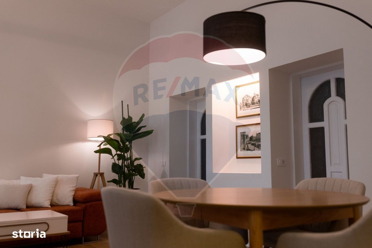 Vă prezintăm spre închiriere un apartament deosebit cu 4 camere, situat pe strada Evreilor Deportați, în zona ultracentrală a orașului Oradea - la doar 2 minute de Piața Unirii. Proprietatea se află într-o clădire istorică complet restaurată, cu arhitectură deosebită și atmosferă aparte. Apartamentul este situat la etajul 1 și beneficiază de acces la curtea comună, precum și de o mică terasă amenajată chiar la intrare - locul perfect pentru cafeaua de dimineață sau un moment de relaxare. Interiorul a fost renovat complet, fiind refăcută instalația electrică și sanitară, izolată termic și finisată cu materiale de cea mai bună calitate. Se închiriază complet mobilat și utilat, pregătit pentru mutare imediată. Compartimentarea este excelentă: - living spațios open-space cu bucătărie și zonă de dining, - cămară pentru alimente și spațiu de depozitare, - dormitor matrimonial luminos, - baie modernă, cu duș și încălzire în pardoseală, - două camere suplimentare, ideale pentru birou, camere pentru copii sau hobby, Confortul este completat de dotări moderne: mașină de spălat rufe, cuptor, plită, hotă, cuptor cu microunde, aer condiționat, aspirator, centrală pe gaz cu control smart prin aplicație. Un element distinctiv este sistemul audio-video premium: home cinema cu sistem de sunet Dolby Surround, proiector cu Bluetooth și ecran de proiecție motorizat, pentru o experiență ca la cinema, chiar acasă. Apartamentul este impecabil, modern, cu personalitate, potrivit pentru o familie sau persoane care apreciază confortul, stilul unic și poziționarea ultracentrală. Te invităm să programezi o vizionare pentru a descoperi personal atmosfera și calitatea fiecărui detaliu.