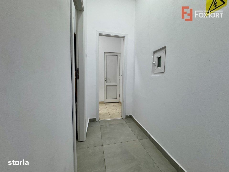 Spatiu comercial cu 6 incaperi - de inchiriat in Complexul Studentesc, Timisoara FOXFORT propune spre inchiriere un spatiu comercial amplasat intr-una dintre cele mai circulate zone ale Timisoarei - Complexul Studentesc. Spatiul are o suprafata utila de 108 mp, este compartimentat in 6 incaperi functionale si dispune de 2 bai, fiind ideal pentru birouri, servicii sau activitati comerciale. Renovat complet in 2020, imobilul beneficiaza de: • contorizare separata (apa, gaz, electricitate, caldura); • finisaje durabile: gresie, covor PVC, tamplarie PVC cu geam termopan; • iluminat LED, acces la internet prin fibra optica; • locuri de parcare disponibile in zona. Cladirea are structura din beton, cu o deschidere de 6 ml. Locatie excelenta pentru business-uri ce necesita vizibilitate, trafic pietonal si conexiuni rapide catre toate punctele importante ale orasului. - Pret inchiriere: 14 €/mp+TVA - Modalitate de plata: surse proprii sau credit bancar - ID intern: C8356 - Performanta energetica: in curs de actualizare