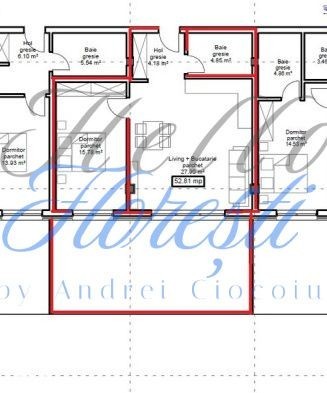 Apartament cu 2 camere, 53 mp, terasa 33mp, finisat, zona Sub Cetate
