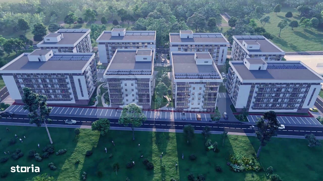 Vă propunem spre vânzare un apartament modern cu o cameră, având o suprafață totală de 43.6 mp. Bloc construit pe structură de beton armat, zidărie din BCA, cu izolație din vată bazaltică, oferind un nivel ridicat de confort termic și fonic. Dotări și finisaje premium: Încălzire în pardoseală cu distribuitor individual Parchet Classen 10 mm, rezistent la apă, special pentru încălzirea în pardoseală Plăci ceramice Delta Studio în băi, complet finisate și echipate cu obiecte sanitare din gama premium Centrală termică în condensație și aparat de aer condiționat Tâmplărie PVC cu 3 straturi de sticlă (7 camere - 4 Season/Flat/Low-E), ce asigură eficiență energetică sporită Uși de interior din MDF cu toc reglabil și ușă metalică la intrare Balcon cu balustradă din sticlă pentru un aspect modern și elegant Comision 0% pentru cumpărător - achiziție direct de la dezvoltator. Parcare disponibilă: 7.000 € - loc de parcare exterioară 12.000 € - loc de parcare interioară, situată la parterul blocului Facilități pentru un stil de viață modern și activ: 1 km de piste de biciclete ce înconjoară întregul cartier; Fit Zone la ultimul etaj al fiecărui bloc, spațiu dedicat sportului și relaxării; Parc de joacă pentru copii și zone verzi amenajate și sigure; Iluminat ambiental pe fațade și în interiorul complexului. Tehnologii și confort: Panouri fotovoltaice, pentru eficiență energetică și costuri reduse; Parcări private - exterioare și tip garaj, disponibile contra cost; Preechipare pentru stații de încărcare a mașinilor electrice, încurajând mobilitatea ecologică. Comision 0% pentru cumpărător