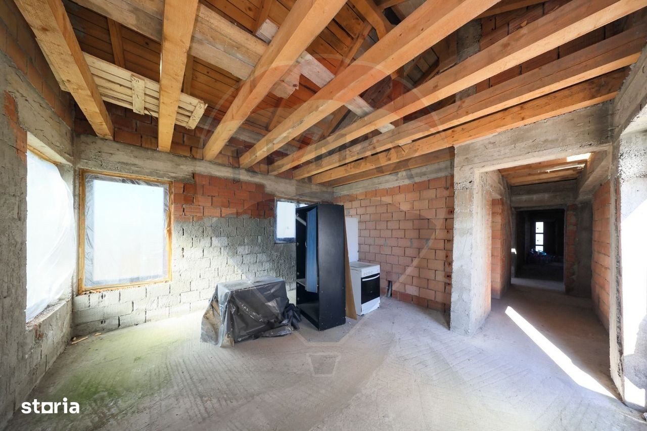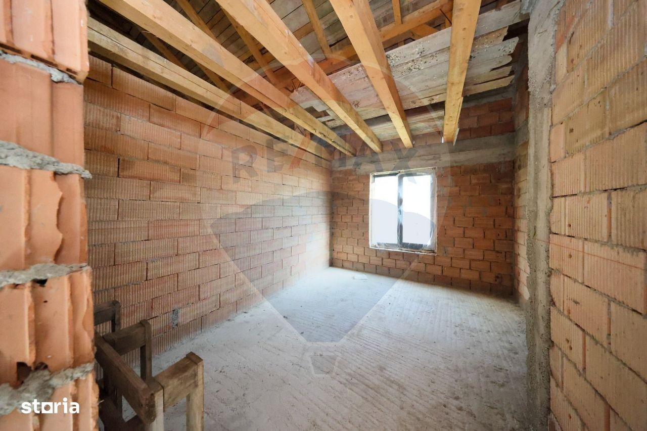 Se oferă spre vânzare o casă tip duplex, compusă din două unități locative independente, fiecare cu terasă proprie, curte individuală și drum de acces separat - fiecare având deschidere la străzi diferite. Construcția este realizată pe plan parter, proiectată ca unitate individuală, cu o compartimentare practică și echilibrată: Prima unitate este structurata astfel: - 1 dormitor matrimonial cu baie proprie; - cel de-al doilea dormitor spatios; -cea de-a doua baie; - zona de zi; - bucatarie inchisa; - hol de distributie; - terasa privata cu platforma si stalpi din beton armat; - loc de parcare in curte. Cea de-a doua unitate unitate este compusa din: - 2 dormitoare spațioase; - zona de zi, cu bucatarie deschisa; -baie; -hol de distributie; -spatiu de depozitare/dressing; - terasa privata cu platforma si stalpi din beton armat; - curte proprie cu posibilitatea amenajarii locului de parcare. Casa este edificată în stadiul „la roșu”, cu structură solidă din beton armat și zidărie din cărămidă, acoperiș modern tip click, tamplarie PvC cu 3 foi. Toate lucrările executate pe baza proiectului tehnic autorizat. Podul este mansardabil, prevazut cu geamuri pentru lumina naturala, si care se poate amenaja si compartimenta dupa preferintele fiecaruia. Zona este liniștită, aerisită și în continuă dezvoltare, cu acces facil către Brașov și toate punctele de interes din localitate. Avantaje: Locație excelentă și liniștită; Construcție solidă, bine proiectată; Curți și acces complet separate; Posibilitate de finisare după preferințe; Acces separat pentru fiecare unitate - ideal pentru două familii sau pentru investiție; Pretul afisat este pentru intreaga unitate; Comision 0% pentru cumparator. Pentru detalii si vizionari, cu drag va stau la dispozitie la numarul de telefon afisat!