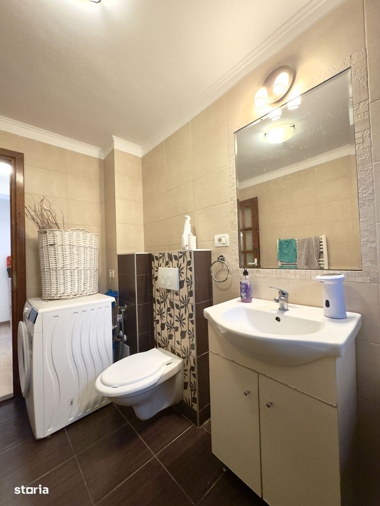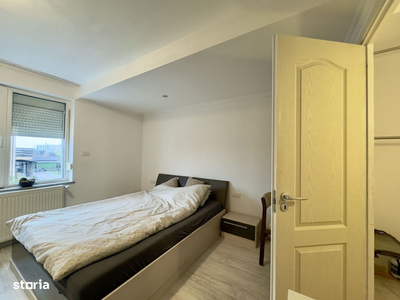 Va prezentam spre inchiriere apartament cu 2 camere, decomandat, in Moșnita Nou, la 200 m de Kaufland, 500 m de LIDL, 800 m de centura Timișoarei Imobilul are suprafata utila de 64 mp + balcon deschis 10,5 mp, situat la etajul 1. Compartimentare: Sufragerie: 16,63 mp Dormitor + Dressing: 13,14 mp + 1,8 mp Bucatarie: 18,1 mp Baie: 5,37 mp Hol: 8,76 mp Balcon: 10,5 mp Confortul termic este asigurat de centrala termica nouă in condensare (consum redus), detector de gaz si termostat si de sistemul de aer conditionat. Alte detalii: Rulouri din aluminiu la usi si geamuri - protecție solara si intimitate. Loc de parcare: disponibil, agreat intre locatari (nu este trecut în CF) Canalizare pe fosa septica (golire la ~3 luni, cost aprox. 100 RON) Apă menajera din puț: Nu este potabilă - recomandată doar pentru uz menajer Se plătește doar curentul consumat de hidroforul comun pe bloc (aprox. 100 RON/lună pentru tot blocul) Filtrare apă: apartamentul are montate 4 filtre ATLAS la intrare, pentru o apă menajeră mai curată (schimb la 3-4 luni, cost aprox. 150 RON) Contribuție pentru curățenia pe scară: aprox. 100 RON/lună Pret: 330 eur/luna + garantie