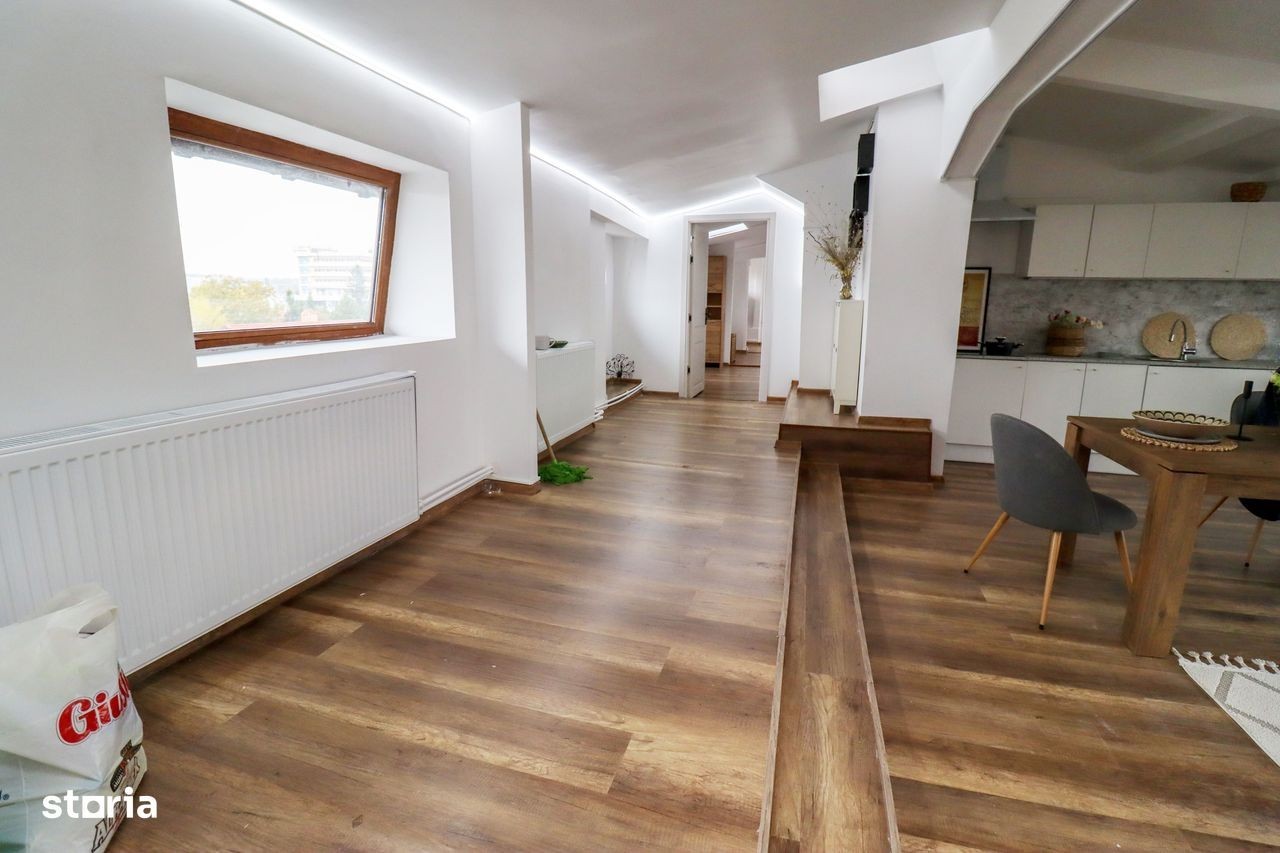 Va propunem spre vanzare un spatiu foarte special, un pod locuibil cu o suprafata utila totala de peste 130 mp, cu 3 dormitoare, 3 bai si un living spatios, situat intr-o zona foarte linistita. Pretabil pentru: - spatiu birouri - atelier artisti - locuinta artist Loc de PARCARE inclus Va asteptam la vizionare!