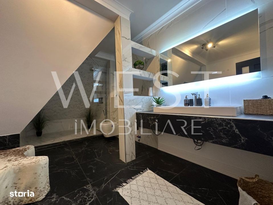 Descopera un apartament spectaculos, cu o suprafata totala de 120 MP, situat la etajul 4 al unui bloc relativ nou, intr-una dintre cele mai linistite zone, Valea Garboului Proprietatea este amenajata cu multa atentie la detalii, cu finisaje premium si un design modern-elegant, perfect pentru cei catr cauta un spatiu de locuit cu adevarat diferit, rafinat si confortabil Compartimentare si dotari: Living generos cu doua canapele confortabile, TV, perete cu placare decorativa, lumina ambientala si acces catre zona de dining si bucataria open space Bucatariae complet utilata, mobilier negru mat, electrocasnice premium, insula centrala, spatii de depozitare multiple si finisaje de marmura Doua dormitoare spatioase, unul matrimonial cu baie tip " hotel suite " separata prin perete de sticla, cu cada freestanding Balcon spatios, amenajat cu lemn, lumina calda, si vedere deschisa, perfect pentru relaxare Finisaje si amenajare Parchet premium si marmura Elemente naturale: lemn, piatra, accente metalice Iluminat modern cu spoturi si candelabre Mobilier custom, stil contemporan Spatii de depozitare integrate Design elegant, potrivit unui stil de viata modern Alte avantaje: Parcare inclusa Bloc nou, vecini linistiti Zona verde, aproape de padure si aer curat Acces rapid spre oras, supermarketuri, scopli si statii de transport Ideal pentru persoane sau familii care cauta un apartament cu personalitate, amenajat complet si gata de mutat, intr-o zona sigura si retrasa Cod ofertă / ID: WST3161