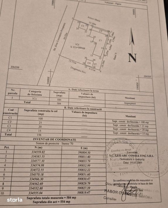 Comision 0% Cumpărător Propunem spre vânzare un teren excelent poziționat în zona Pipera - Constantin Pritopescu, pe o stradă liniștită, cu circulație redusă (stradă închisă). Proprietatea are o suprafață totală de 585 mp și o deschidere generoasă de 24,72 ml, ideală pentru proiecte rezidențiale premium. Pe teren se află o casă cu o amprentă de aprox. 180 mp, construită în 1970, structurată pe un singur nivel. Construcția poate fi renovată sau demolată, în funcție de viziunea noului proprietar. Avantaje și potențial: Posibilitatea de a ridica două case individuale sau o casă premium unifamilială Toate utilitățile sunt trase în casă: curent, gaze, apă, canalizare Zonă exclusiv rezidențială, foarte liniștită, cu acces rapid către: Școli și grădinițe internaționale (American School, Olga Gudynn, Mark Twain) Centre comerciale (Pipera Plaza, Promenada în câteva minute) Transport și acces facil către București, DN1, A3 Stradă cu trafic minim, ideală pentru cei care caută intimitate și siguranță Acte la zi: cadastru, intabulare, extras CF Caracteristici teren: Suprafață totală: 585 mp Deschidere: 24,72 ml Formă regulată, ideală pentru dezvoltare Amprentă casă existentă: aprox. 180 mp Regim urbanistic permisiv în zonă (proiecte rezidențiale cu valoare ridicată)