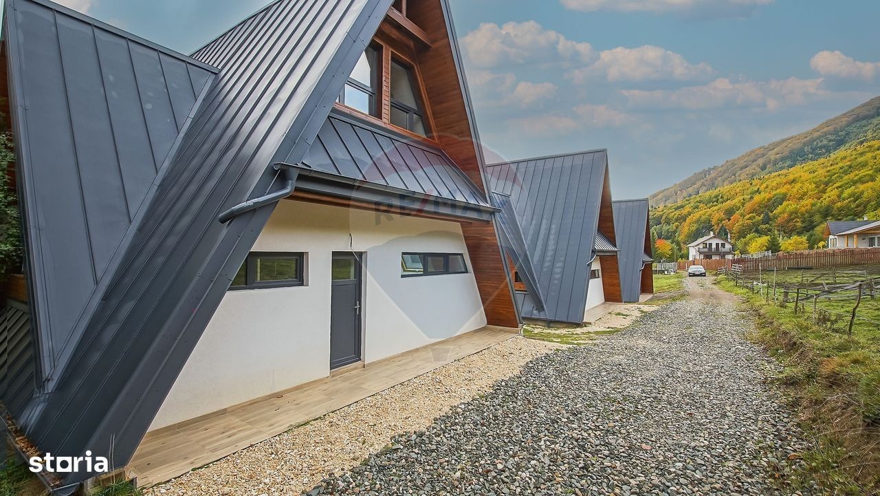 Ansamblu de 3 case tip A - construcții moderne în mijlocul naturii, la granița dintre Bran și Zărnești. Locatie : s://maps.app.goo.gl/YTsShmequhcPaAMu9 Vă prezentăm un ansamblu compus din 3 case tip A, amplasate pe un teren generos de 1.205 mp, într-o zonă liniștită, cu acces facil din drumul asfaltat Bran-Zărnești (doar 300 m de drum pietruit, recent refăcut). Fiecare unitate are 143 mp desfășurați (106 mp la sol), din care 87 mp utili plus aproximativ 35 mp de terase și balcoane. Terenul aferent fiecărei case este de circa 240-250 mp. Configurația interioară oferă un echilibru perfect între confort și funcționalitate: Parter: living cu bucătărie open space de 32 mp, dormitor de 12 mp și baie cu duș; Etaj: dormitor spațios de 14,3 mp și baie cu cadă. Construcțiile au la bază o fundatie solidă din beton și o structură din lemn tip fagure, termoizolate cu materiale premium (polistiren extrudat 15 cm la placă, vată minerală 25-30 cm la pereți și plafon). Acoperișul este Lindab, iar tâmplăria Salamander și ferestrele Velux asigură eficiență energetică și lumină naturală abundentă. Utilitățile sunt complet funcționale: Alimentare cu apă din rețeaua locală; Fosa septică comună de 20 mc; Instalație electrică trifazică, contoare individuale, 13 kva, boiler 200 L și convectoare electrice pentru încălzire Posibilitate de racordare la gaze, rețeaua fiind acum extinsă la doar 60 m de proprietate. O suprafață de teren liberă de aprox. 450 mp oferă opțiunea construirii unei a patra case sau amenajării unui spațiu comun / parcare. Proprietatea este intabulată (nedefalcat) și se pretează atât pentru rezidență permanentă, cât și pentru închiriere turistică. Oportunitate de investiție cu un randament net foarte bun ! Datorită cererii turistice ridicate în zona Bran, fiecare unitate poate fi exploatată profitabil în regim hotelier. Conform datelor de piață și estimărilor prudente: Preț mediu anual: ~120 €/noapte Grad ocupare estimat: 45 % (~165 nopți/an/casă, Grad de ocupare pesimist ) Venit anual estimat: ~19.800 €/casă → ~59.400 €/an pentru întregul ansamblu Cheltuielile operaționale cu cheltuieli, comisioane Booking / Airbnb sau firmă de property management (utilități, mentenanță, curățenie, administrare/ comisioane, publicitate & marketing ) sunt estimate la ~ ********** €/an. Iar în cazul administrarii directe (utilități, mentenanță, curățenie, publicitate & marketing )de ~10.000 €/an, rezultând: -Randament net de 9 % / an cu administrare directă respectiv, -Randament net de 7,5% / an, după cheltuieli cu comisioane Booking / Airbnb sau firmă de property management. Perioadă de recuperare a investiției: ~11-13 ani, în funcție de gradul de ocupare și strategia de gestionare. Nu rata această oportunitate! Contactează-ne astăzi pentru a programa o vizionare și pentru mai multe detalii despre cum poți beneficia de acest randament excelent! Fabian Petrescu RE/MAX EVOLUTION T: