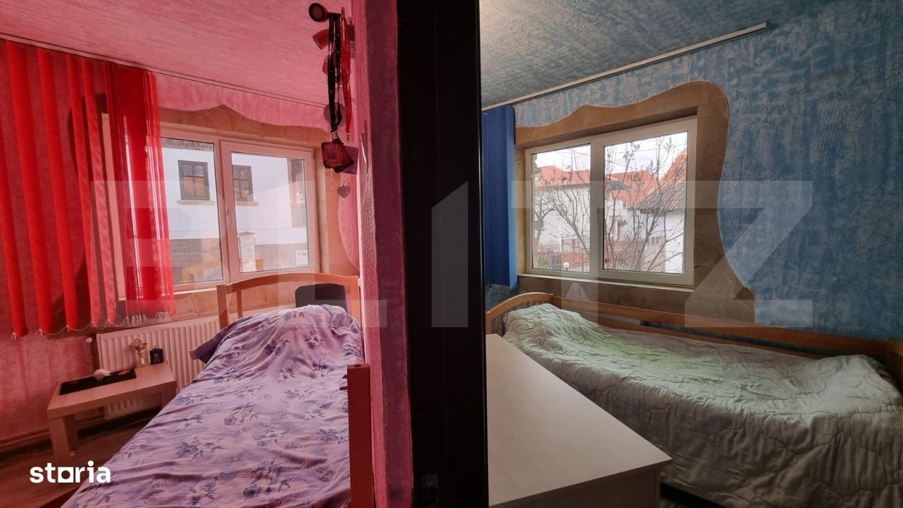 Viștea, Gârbău - Casă de 210 mp pe un teren de 1350 mp, cu două apartamente separate, anexă, șură și garaj. Proprietate rară în Viștea, ideală pentru cei care doresc liniște, spațiu și flexibilitate. Casa are două apartamente independente: unul locuibil imediat, celălalt pregătit pentru renovare și personalizare. Construcția este solidă, luminoasă, cu potențial mare de recompartimentare sau extindere. Curtea este generoasă, bine organizată, cu acces auto facil, grădină și livadă matură. Șura mare și anexele oferă oportunități excelente pentru atelier, hobby sau activități profesionale. Proprietatea se află într-o zonă liniștită, cu acces rapid către Cluj-Napoca și o comunitate prietenoasă. Potrivită pentru două familii, pentru locuire combinată cu atelier sau pentru investiție, această casă oferă echilibrul ideal între rural modern, spațiu și potențial.