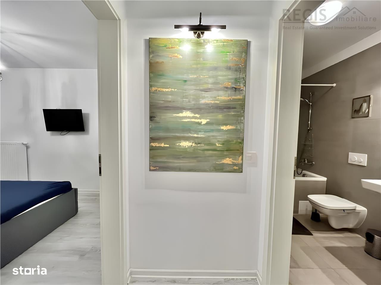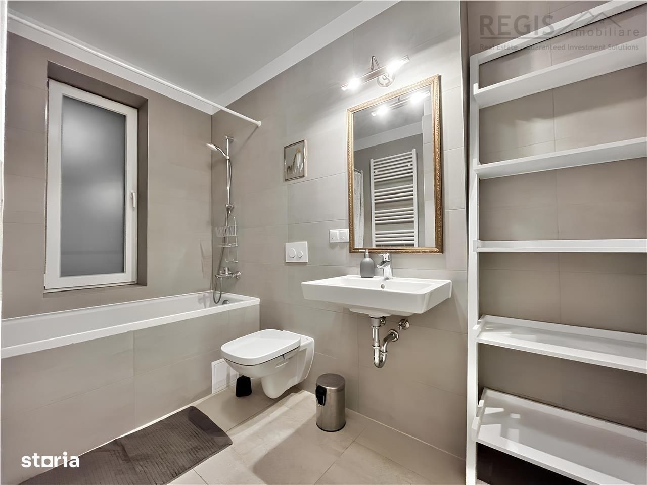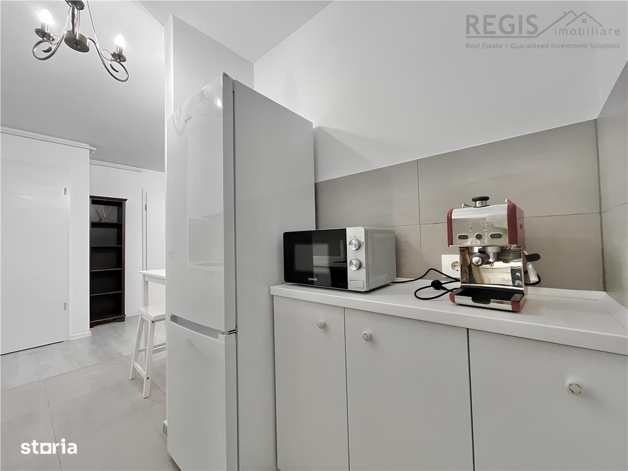 ID intern: 6337 Pentru orice contraoferta, nu ezitati sa ma contactati! REGIS Imobiliare va propune spre inchiriere un apartament modern. Acesta se afla in Kasper pe str. Camil Petrescu 3A la 350 m de mall Coresi. Apartamentul se afla in blocul cu Mega Image si are priveliste spre pietonala. Detalii: - Suprafata 50 mp utili + 8 mp 2 balcoane - 2 camere - Etajul 3 din 8 - Centrala proprie - Orientare E spre pietonala (soare dimineata) - Loc parcare inclus in pret - Boxa pentru depozitare Compartimentare open space: - living cu bucatarie, dormitor, debara, hol, baie si 2 balcoane Utilat cu: - plita, cuptor, cuptor cu microunde, hota, frigider, masina de spalat rufe, masina de spalat vase, TV si espresor cafea Zona: - Mall Coresi (500 m) - Statie autobuz (450 m) - Supermarket Mega Image, Kaufland, Lidl si Auchan (la parterul blocului, 600 m si in mall) - Retaurante, fast-food-uri, cafenele si pizzerie (in mall si complex) - Sala de sport BELAQVA Active Wellness (700 m) - Parcul Tractorul (600 m) - Easy Box (350 m) Inchirierea se realizeaza prin plata de 1 luna chirie, 1 luna garantie si comision agentie. Comisionul este 50% + TVA din valoarea chiriei pe o singura luna. Va astept cu drag la vizionare!