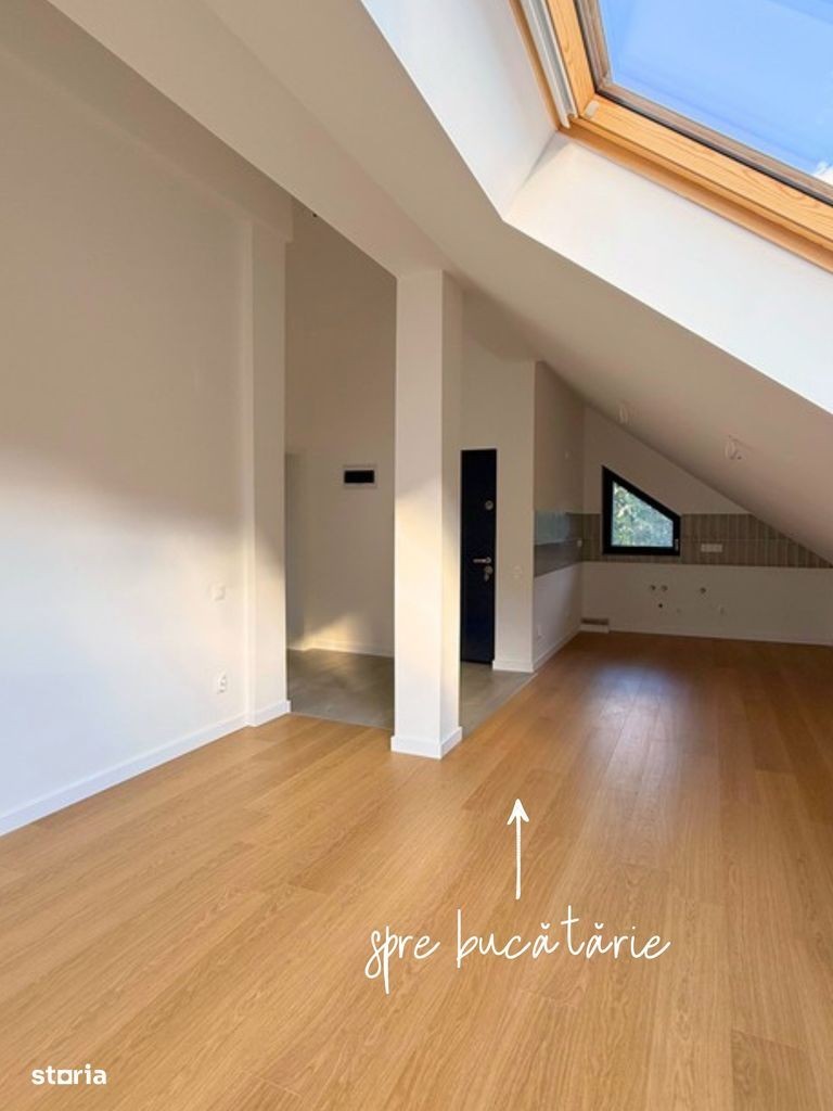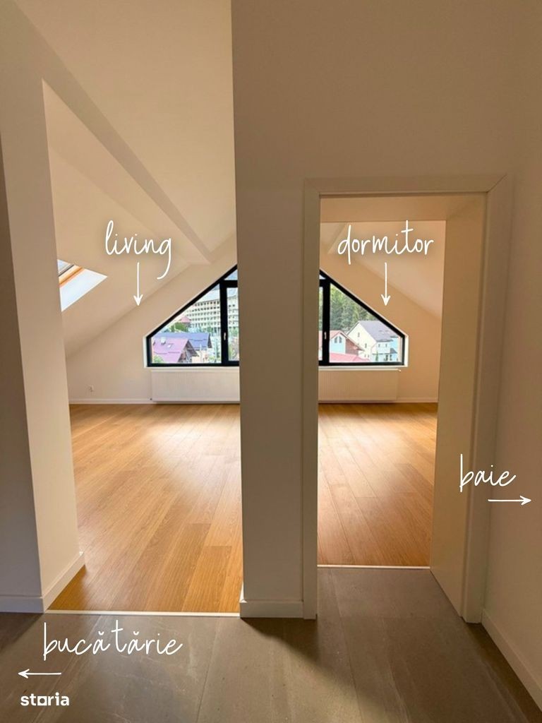- mansardă norvegiană pe tot etajul. - 2 camere, 62mp utili. - ferestre triunghiulare foarte mari.
