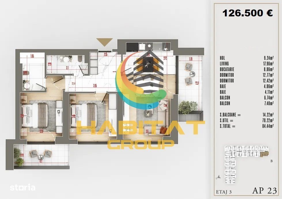 Descoperă acest apartament deosebit în zona Theodor Pallady, perfect pentru cei care își doresc un cămin modern și confortabil. Cu o suprafață totală de 84.44 m², inclusiv un balcon generos de 14.22 m², apartamentul oferă un spațiu optim pentru confortul tău. Situat la etajul 3 al unui bloc modern de 11 etaje, cu finisaje premium, acest apartament reprezintă alegerea ideală pentru cei care apreciază luminozitatea și accesibilitatea într-o zonă dinamică. Preț de vânzare: 126.500 € + TVA Beneficii incluse: Living spațios și luminos Dormitor confortabil Balcon generos de 14.22 m² Confort termic superior (geamuri tripan și încălzire în pardoseală) Smart home integrat Izolație acustică de calitate Locuri de parcare acoperite - Despre zona Theodor Pallady Zona Theodor Pallady este ideală pentru familii și tineri profesioniști, cu facilități excelente și o infrastructură modernă. Este un loc perfect pentru cei care își doresc să fie aproape de centre comerciale, transport public rapid și parcuri pentru relaxare. Școli și grădinițe: Complexul Educațional Victor Brauner Școala Gimnazială Nr. 116 Grădinița Nr. 68 și Grădinița Nr. 160 Transport public rapid: Stații metrou: Nicolae Teclu și Anghel Saligny Tramvaie: linii 19, 27, 40 Autobuze: linii 102, 243, 246, 253, 311, 330 Magazine și centre comerciale: IKEA Pallady, Auchan, Jumbo, Lidl, Decathlon Iris Mall și alte centre comerciale Parcuri și zone verzi: Parcul Teilor (lac artificial și terenuri de tenis, baschet și fotbal) Parcul Alexandru Ioan Cuza (IOR) Bazin de înot, sală de fitness, aerobic și saună - De ce să alegi acest apartament? Este mai mult decât un loc unde să locuiești - este acasă. Beneficiind de finisaje premium, o locație excelentă și facilități moderne, acest apartament este alegerea perfectă pentru un viitor confortabil. Fie că îți dorești mai mult spațiu pentru familie sau un loc care să îți reflecte stilul de viață, acest apartament este alegerea ideală. Pentru detalii și programări pentru vizionare, contactează-mă: Daniel Manea